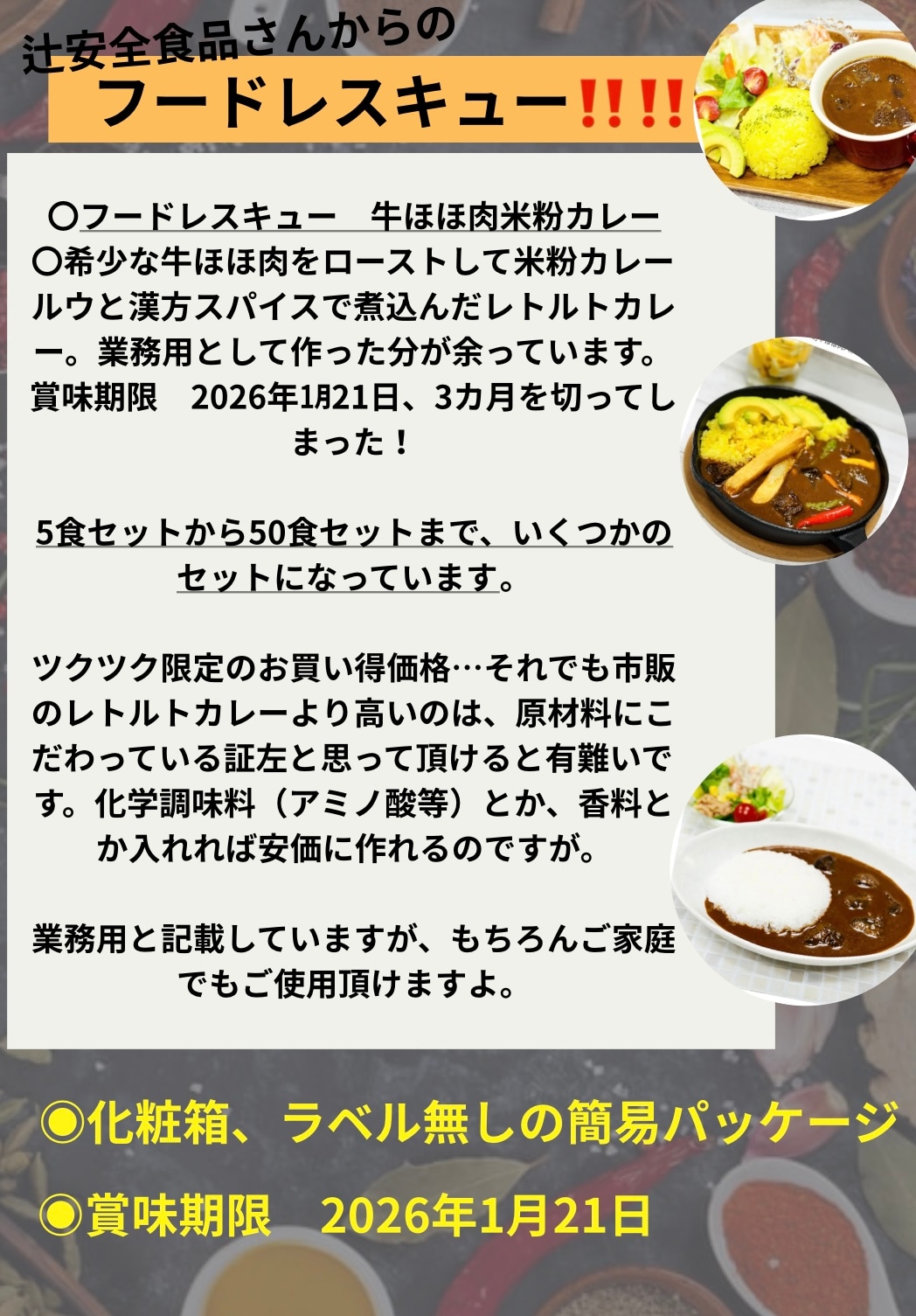 【辻安全食品】さんのビーフカレーのフードレスキューです 🙏