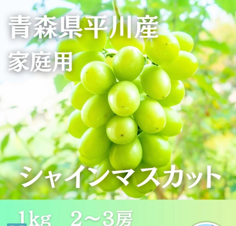 家庭用シャインマスカット【1㎏前後 2〜3房】青森県産 ←こちらをクリック