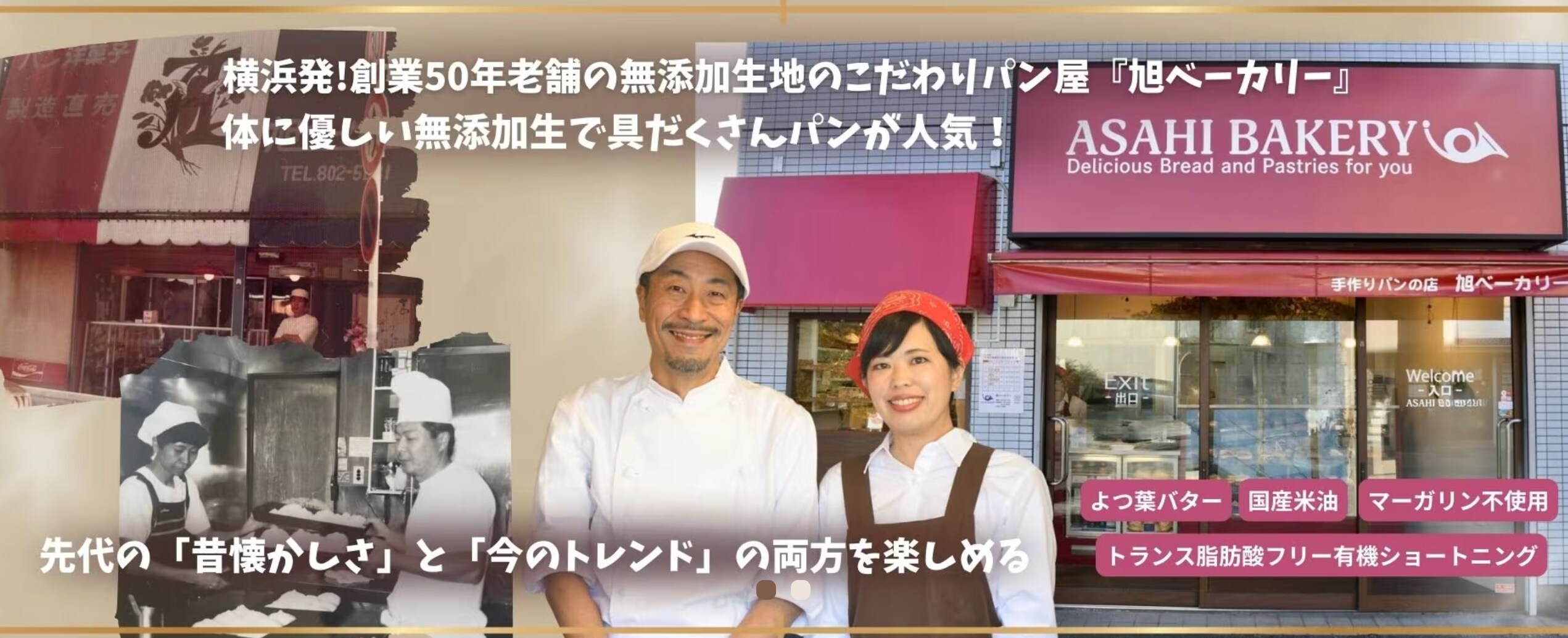 本日は、創業50年老舗の無添加生地のこだわりパン屋さん「旭ベーカリー」さんをご紹介させていただきます♪