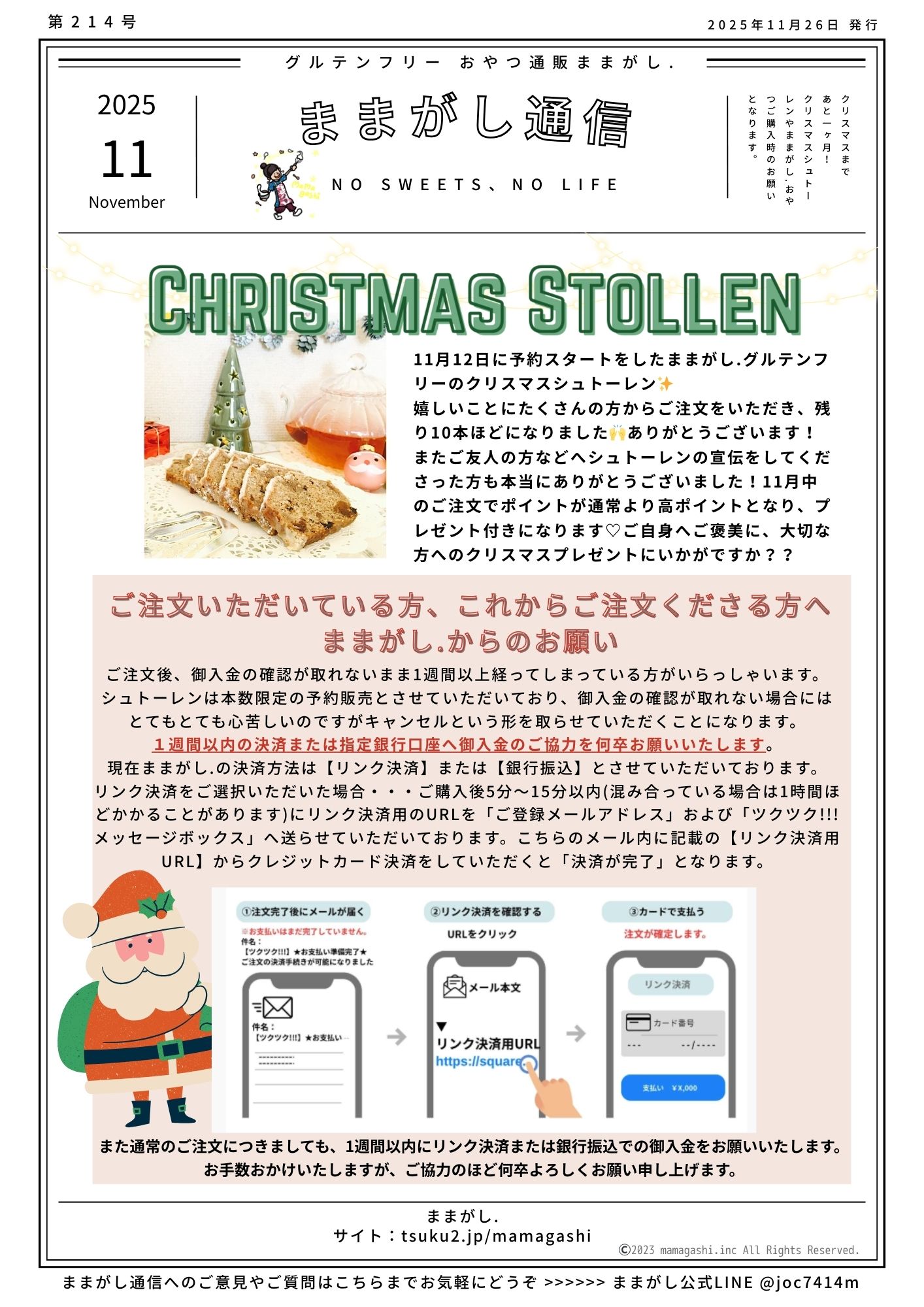 11月12日に予約スタートをしたままがし.グルテンフリーのクリスマスシュトーレン✨