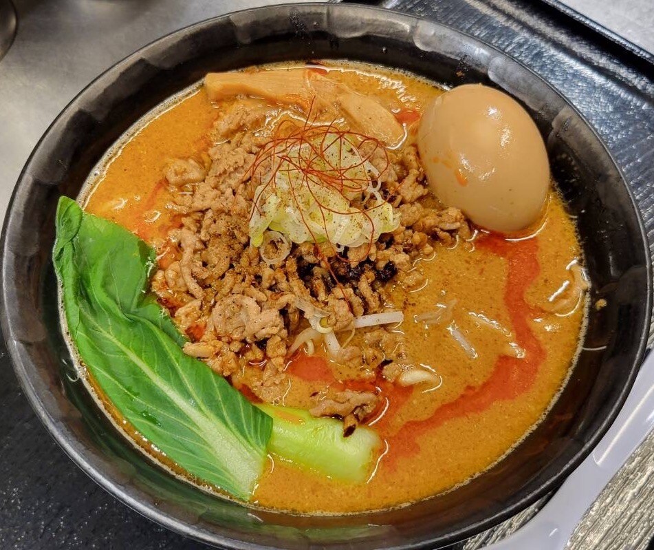 スープはゴマ豆乳でクリーミーな味わい、山椒とラー油でピリッと仕上げております🤤