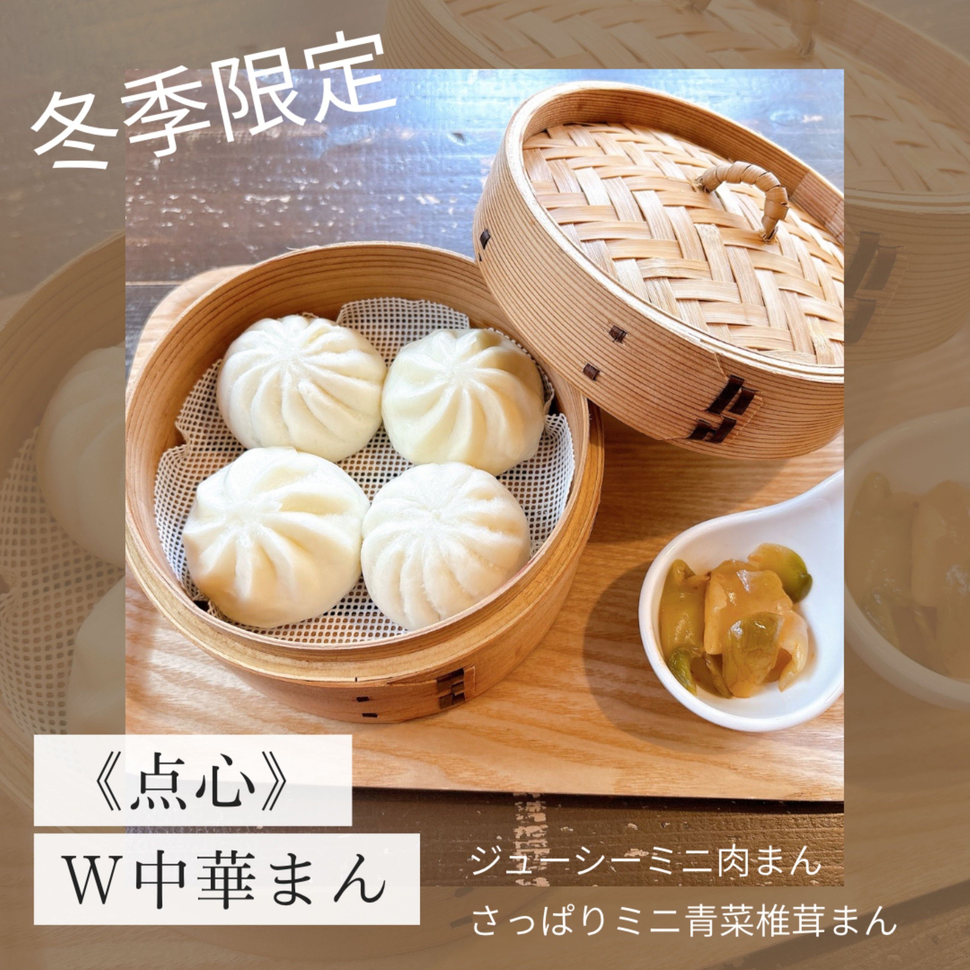 まるで小籠包!?ジューシーでお肉の旨味がたっぷり詰まった『ミニ肉まん』2個 & シャキシャキの青菜と椎茸香るヘルシーな『ミニ青葉椎茸まん』2個