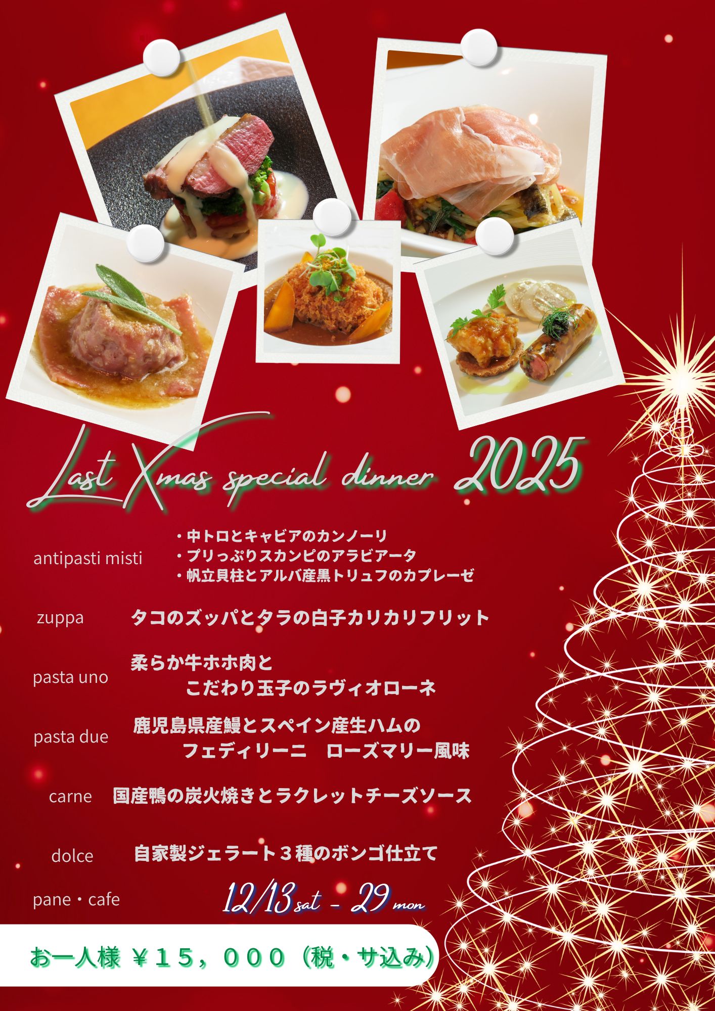 来年秋頃迄には淡路島移転の為、広島では最後のクリスマスコースとなります。皆様のご予約をお待ちしております。