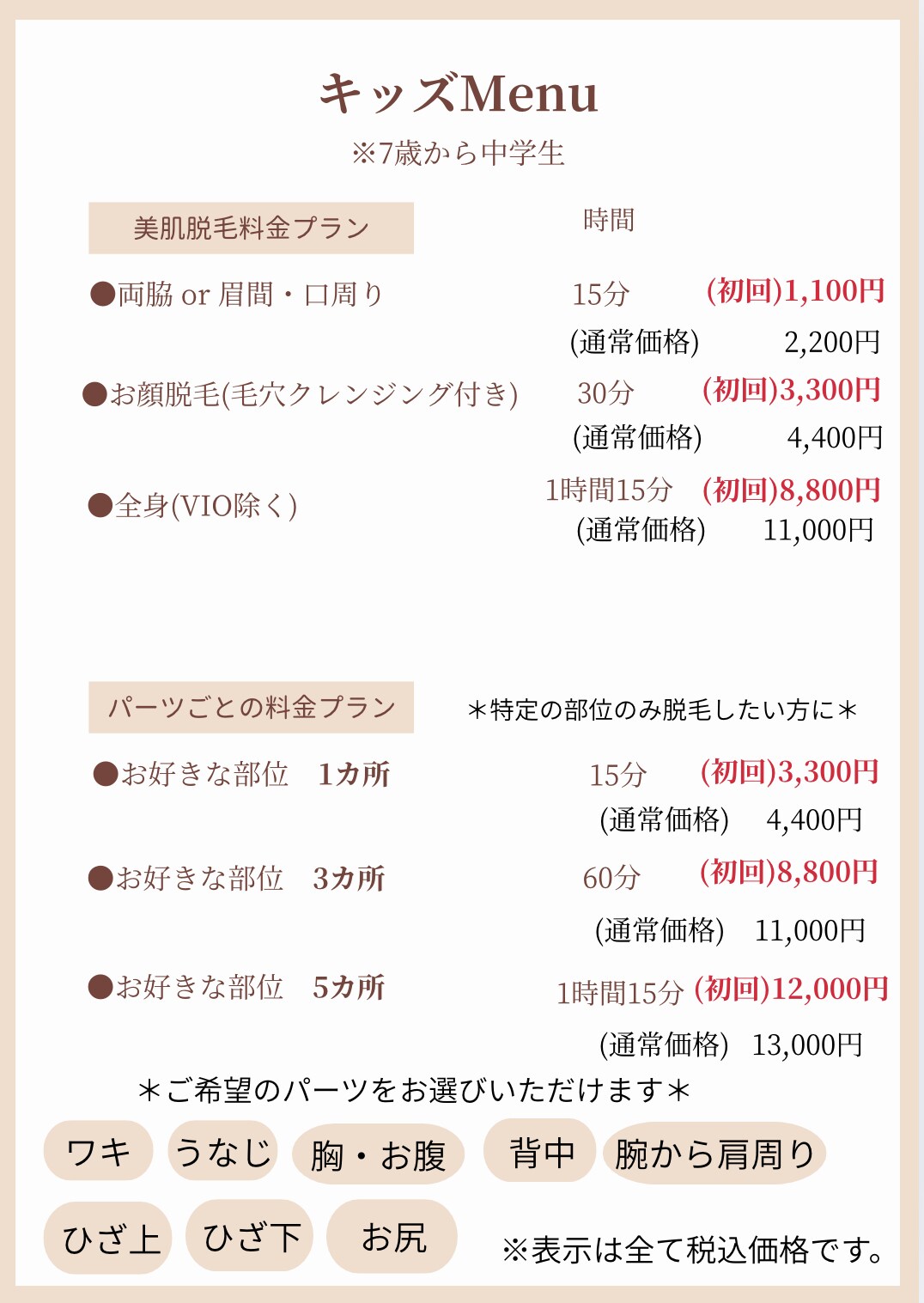 この度新しく、7歳から通える美肌脱毛メニューを導入しました!(キッズ脱毛は、7歳から中学生までとなります)