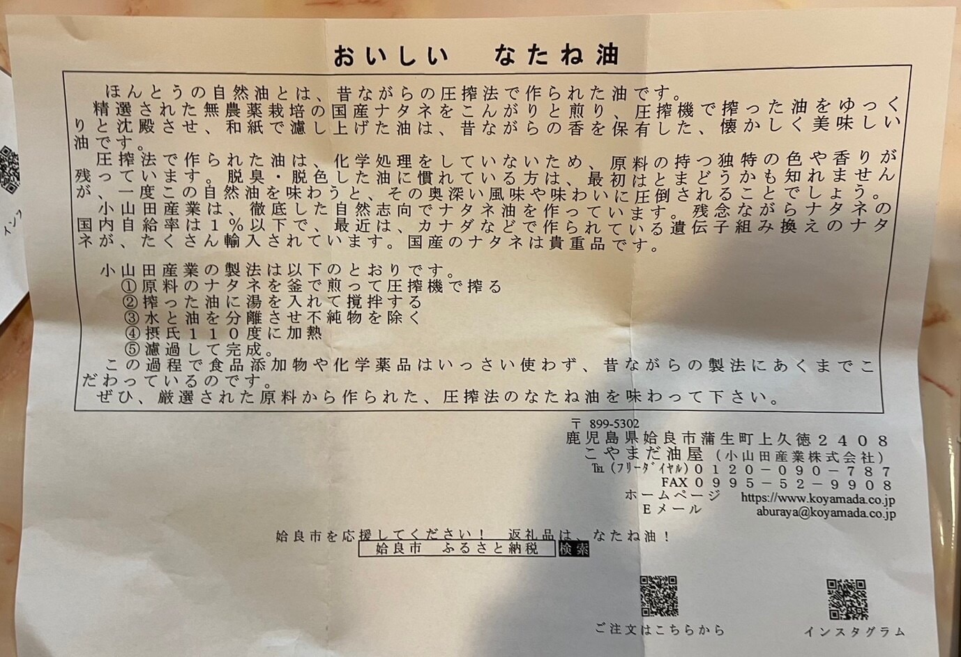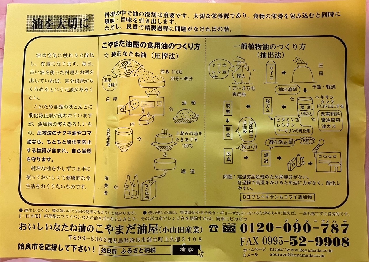 これまで使っていた菜種油が品切れだったので、新たな商品の開拓で探してみました。