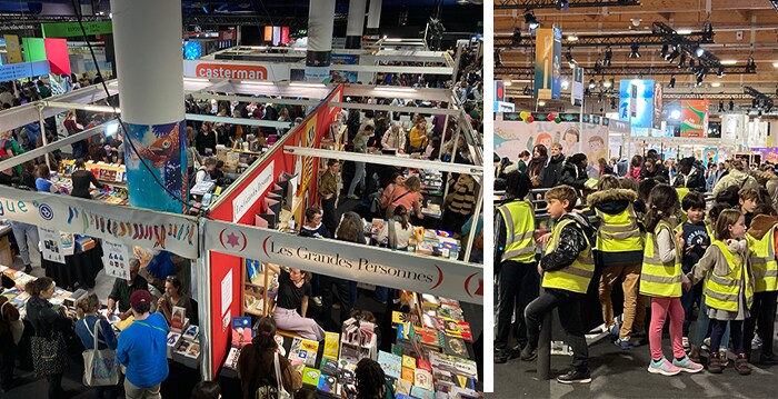 フランス語の絵本の出版社が一同に集まる展示会です。学校単位で子供たちが見に来たり、とっても賑やか。