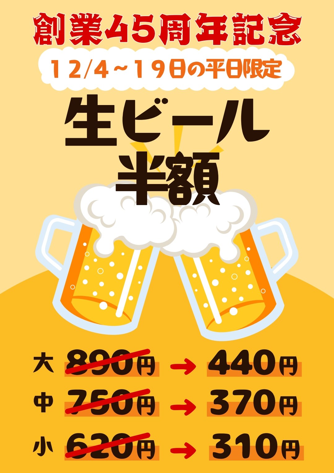 ・生ビール半額