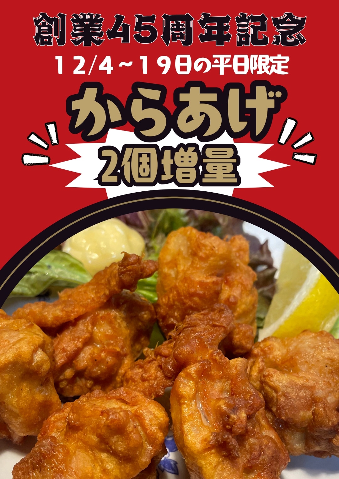 ・唐揚げご注文で2個増量