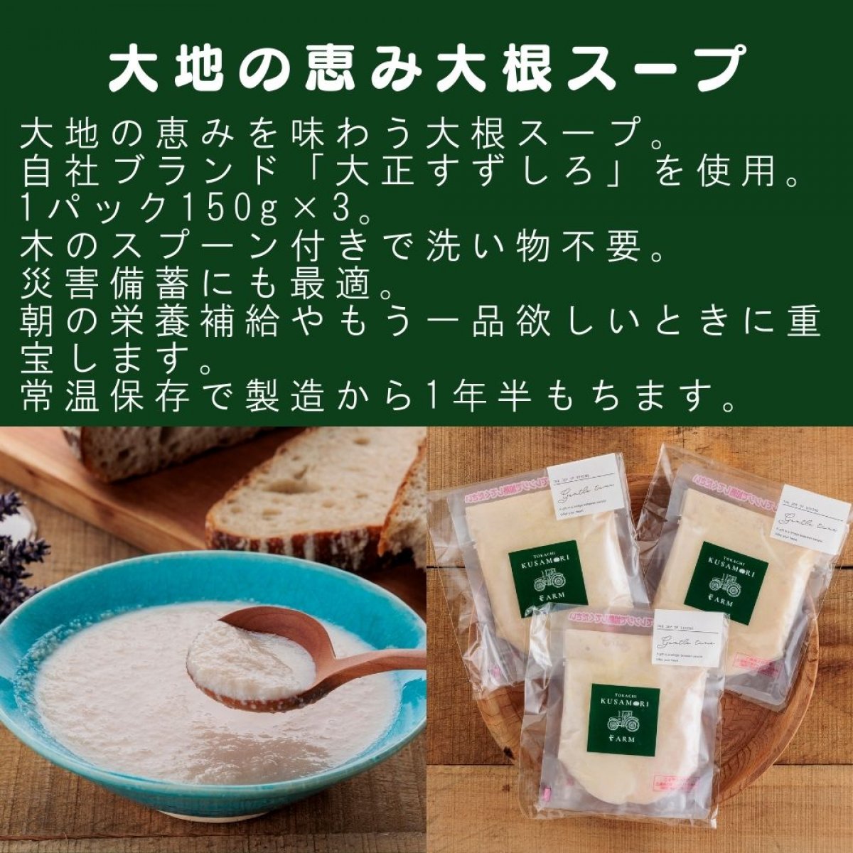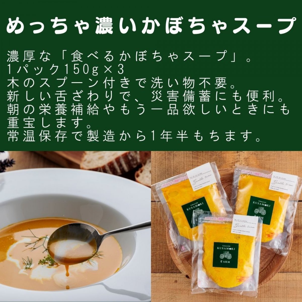 こちらは十勝帯広草森ファームさんの大根スープとかぼちゃスープとカットかぼちゃのお試しセット!