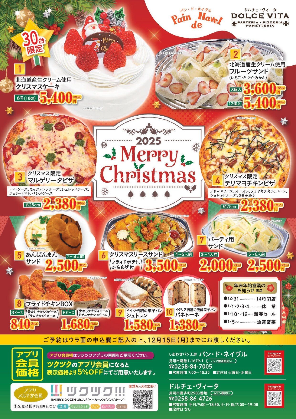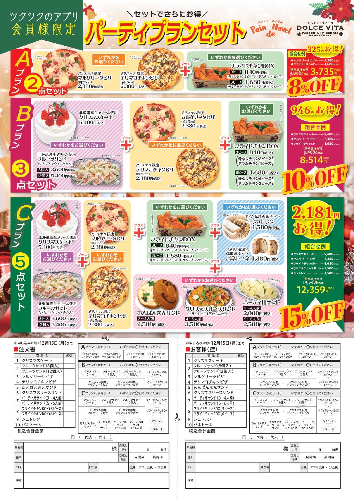ご予約の締め切りは12/15(月)までとなっております。