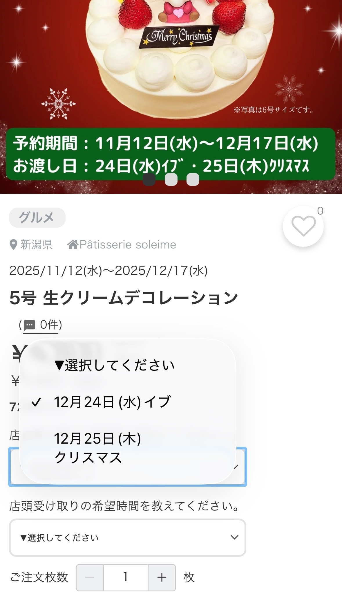 12月17日(水)まで予約が可能で、受け取りが12月24日・12月25日から選択可能です✨
