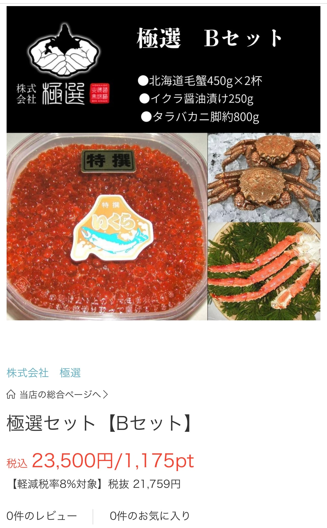 たらばの足だけで1万円。毛蟹二杯で約1.3万円。