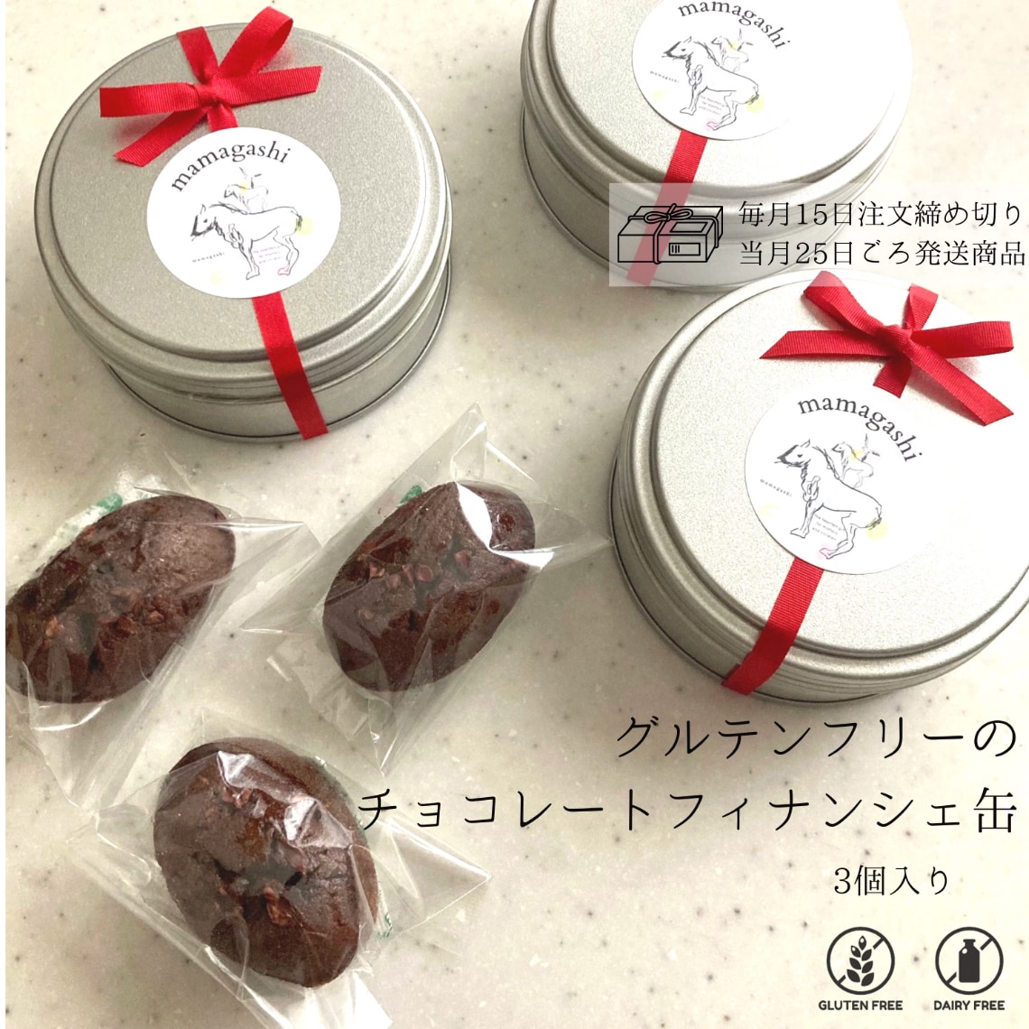 グルテンフリーのチョコレートフィナンシェ 3個セット/小麦粉不使用・乳製品不使用