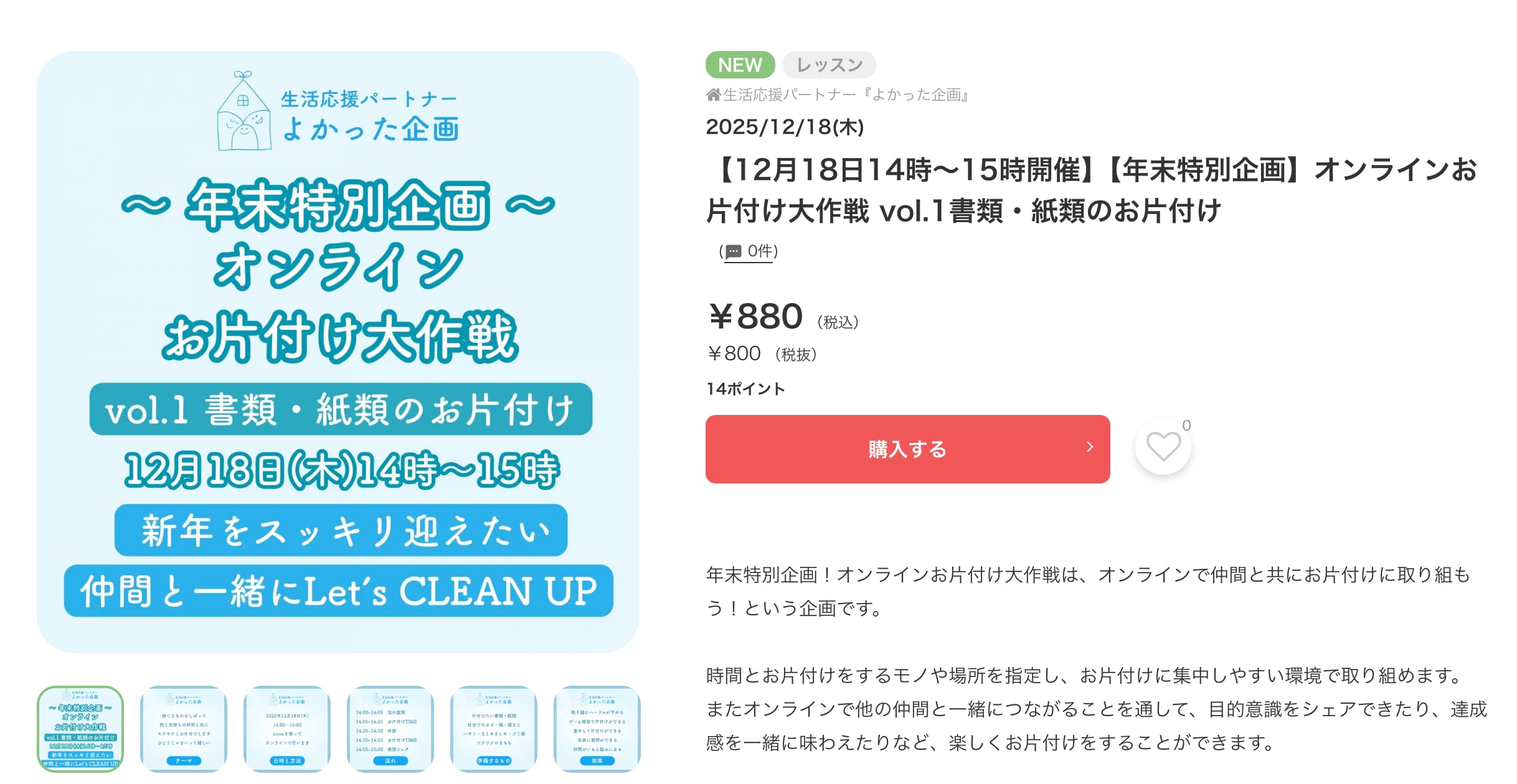 他にも、全6回で片づけの基本から極意まで