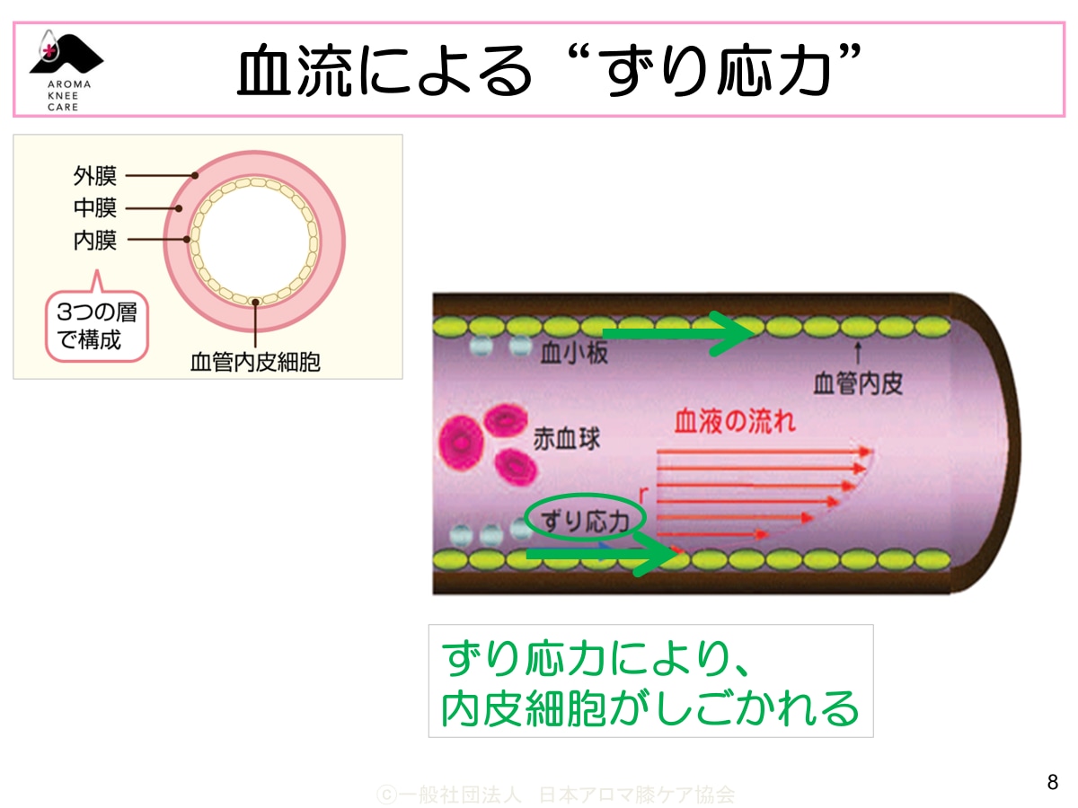 血液と血管内皮細胞の間に摩擦が生じます。