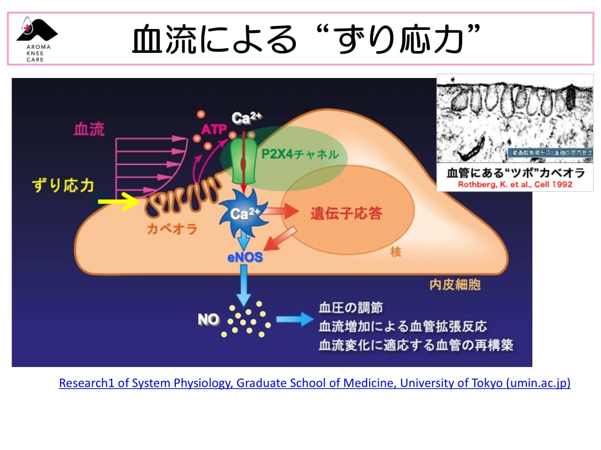 内皮細胞のカルシウムチャネル(P2X4)が開いて