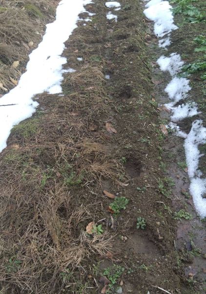 21日。今年2度目の水路回りをしていたら、畑に熊の足跡が!!