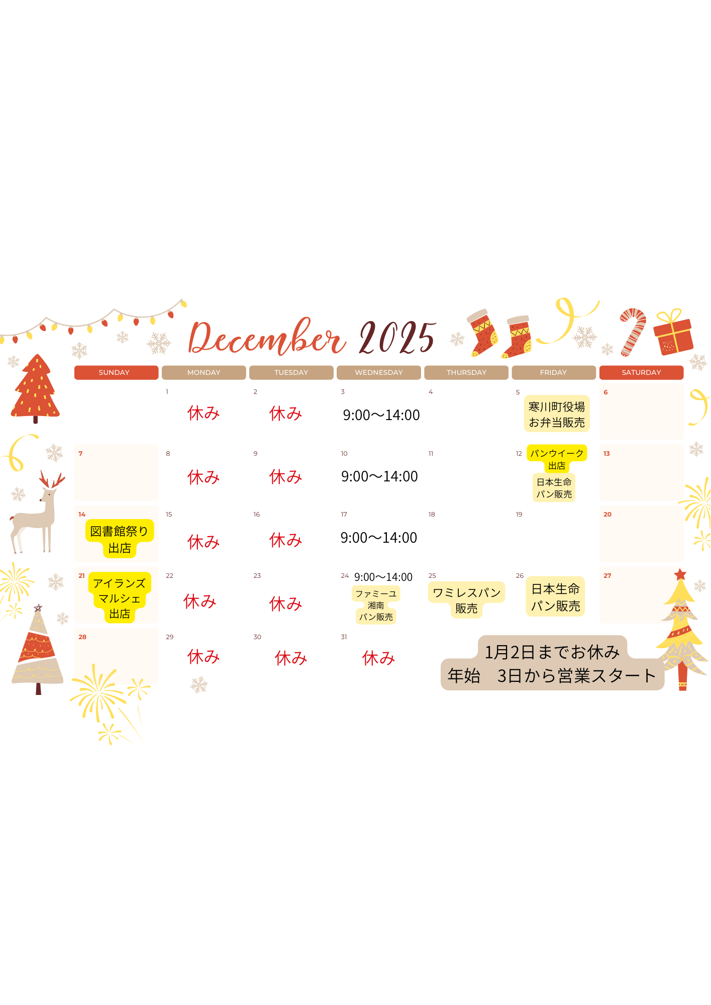 来年も大切な健康と大切な家族が仲良くなる美味しいパンをお届けしてまいります