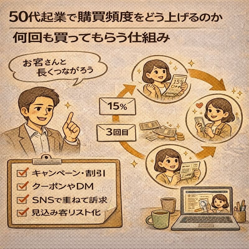 【50代起業】購買頻度をどう上げるのか|何回も買ってもらう仕組み