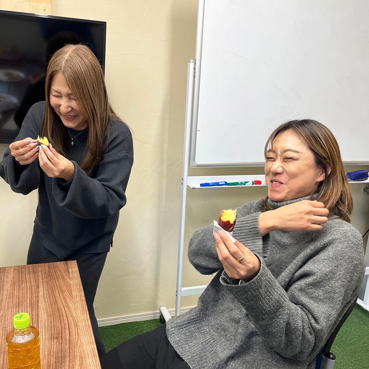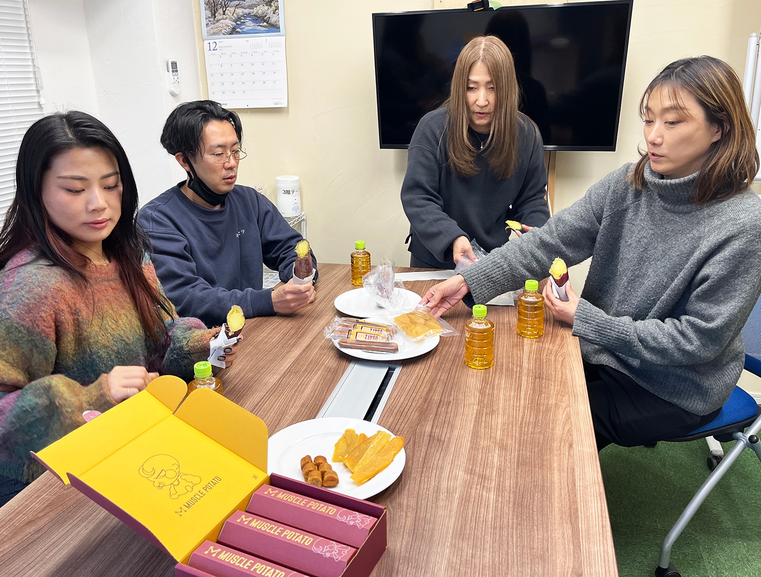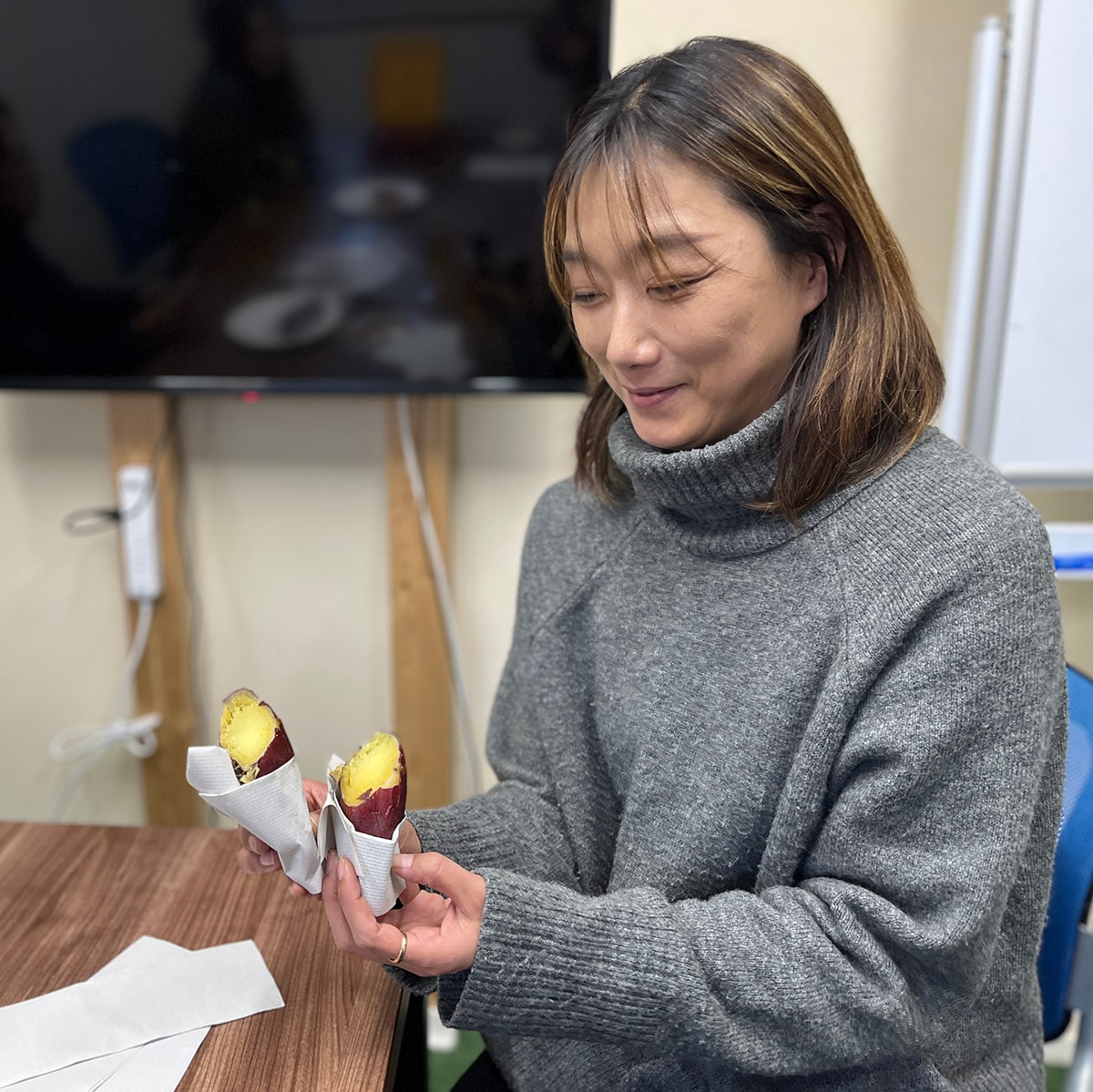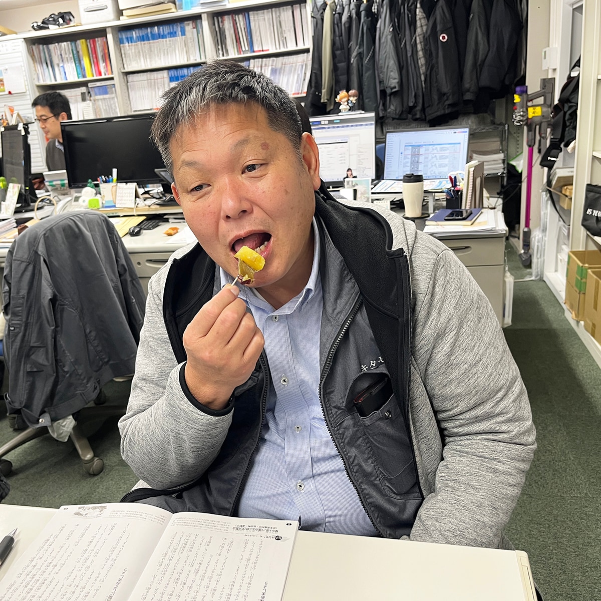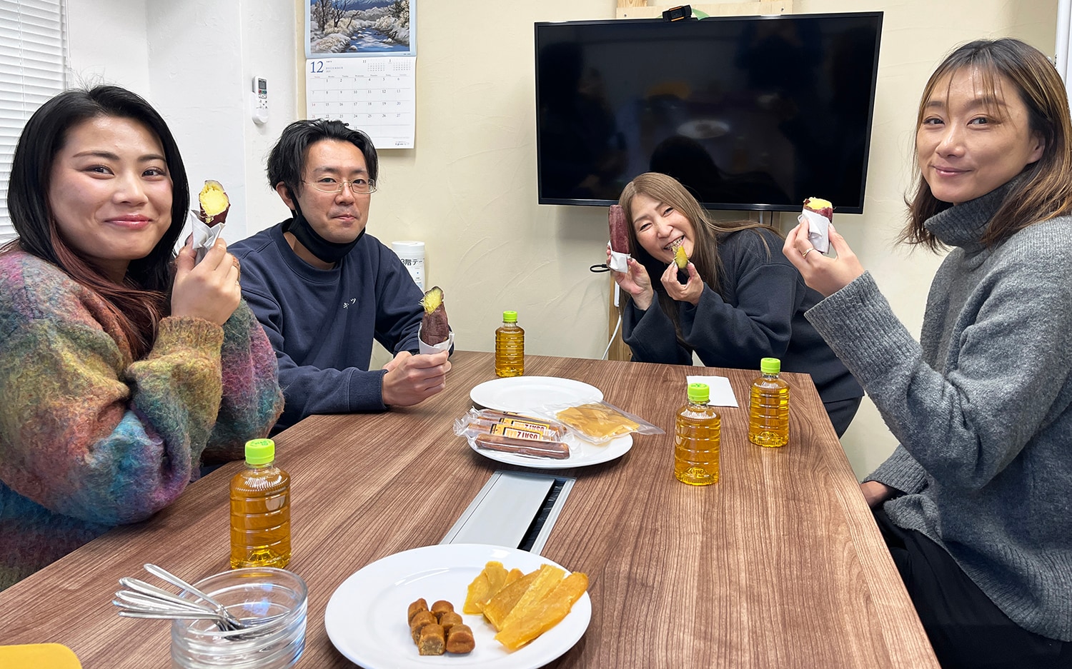 「焼き芋もおいしいです!」と久保の手が止まりません。ちょうど小腹がすく時間帯ですね。