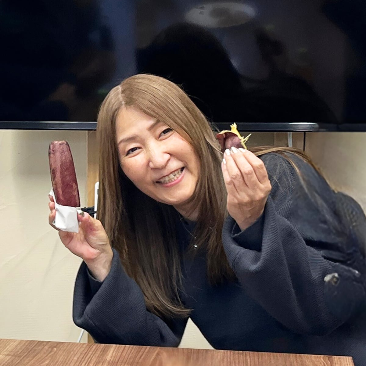 「3種類ともそれぞれに美味しくて、一番は決められません(笑)。こんなに甘くておいしいのに低カロリーだなんて魅力的すぎます!365日ダイエッター!でも甘いものが好きで、控えるとストレスが溜まっちゃう…という私にはサイコーですね!冷凍の焼き芋を解凍しただけで、こんなにおいしいというのは一番の驚きでした!」