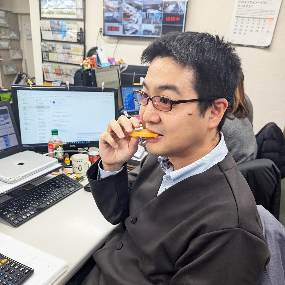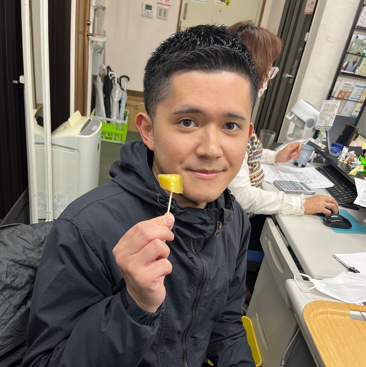 おさつバーを手にしているのはプランナー・玉島。
