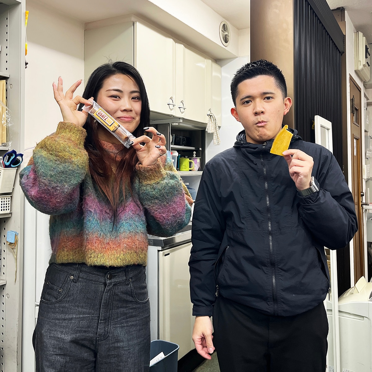 内装担当の冷水は「干し芋やおさつバーは甘さは控えめだから、ダイエット中のおやつとして罪悪感なく食べられるのが良いですね。僕はしっかり甘さのある焼き芋が一番好みです!」