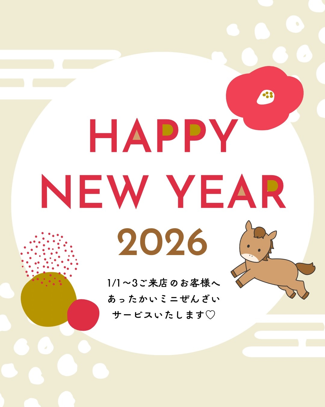 店内でご飲食の方へ温かい『ミニぜんざい』サービス中!(数に限りがあります)