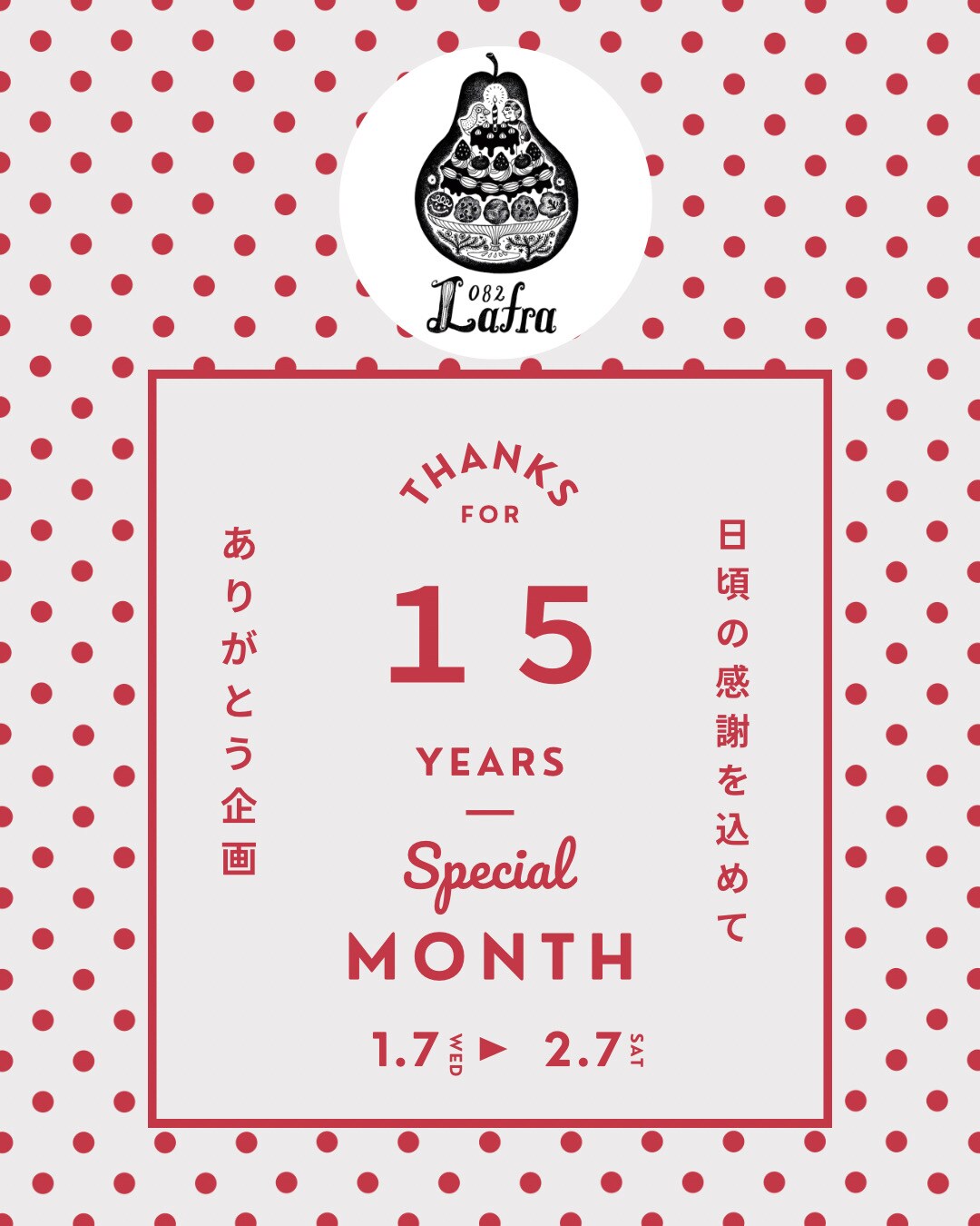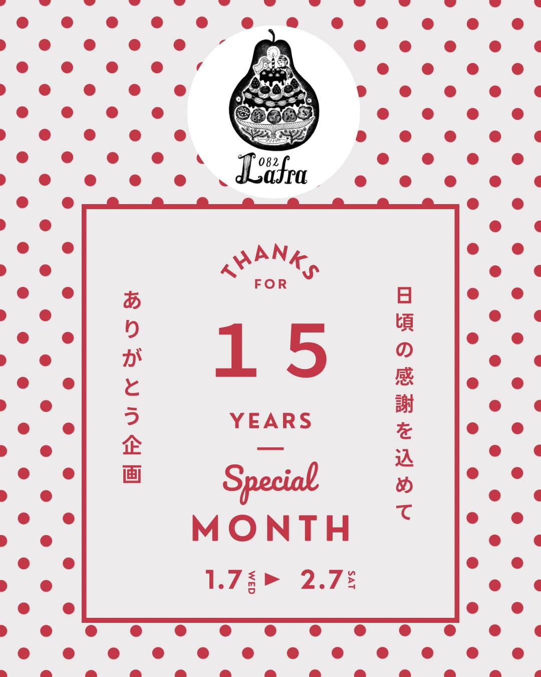 Lafra 15 周年ありがとう企画 1/7~2/7まで