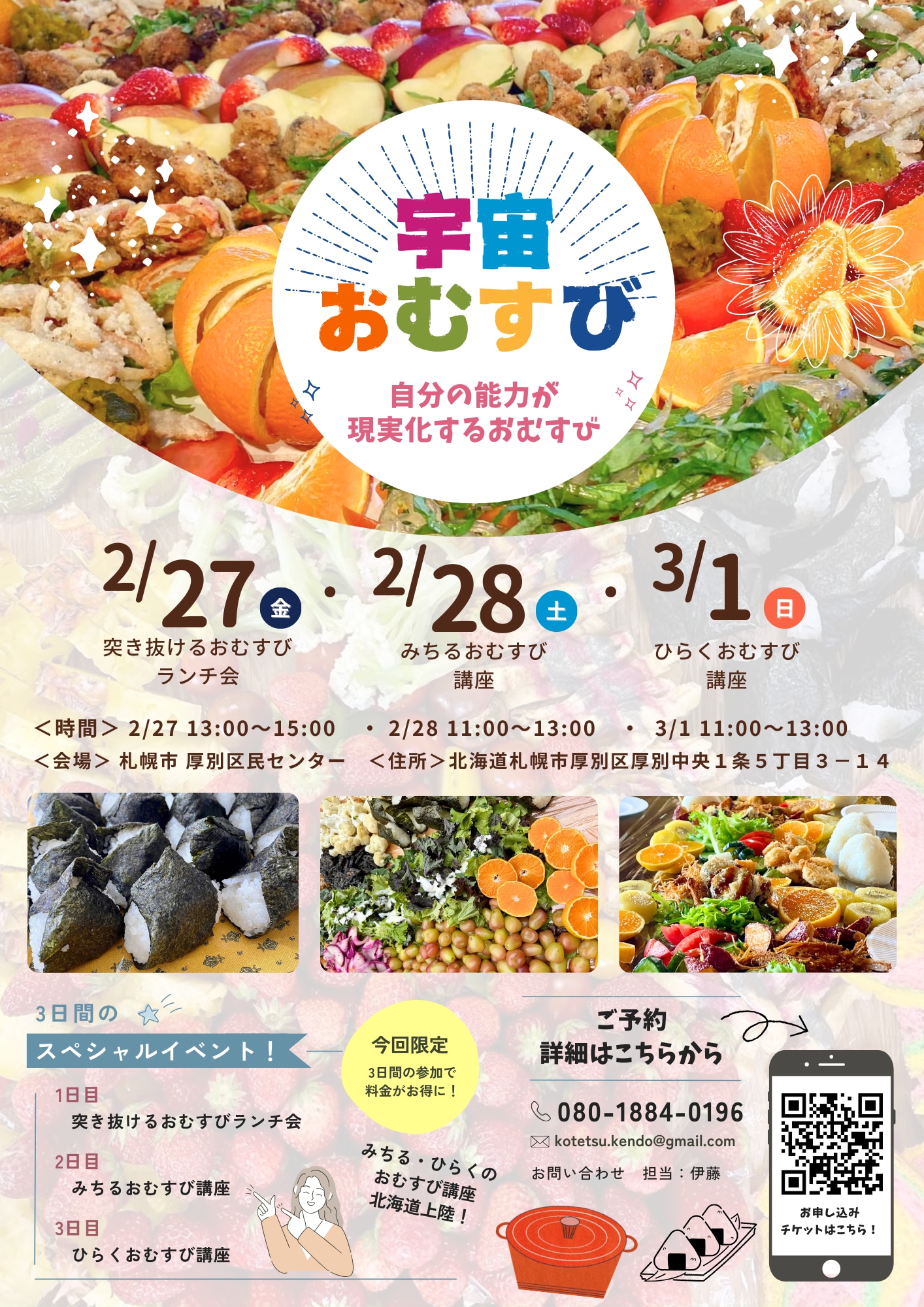 3月1日 ひらくおむすび講座 11時から13時 厚別区民センター