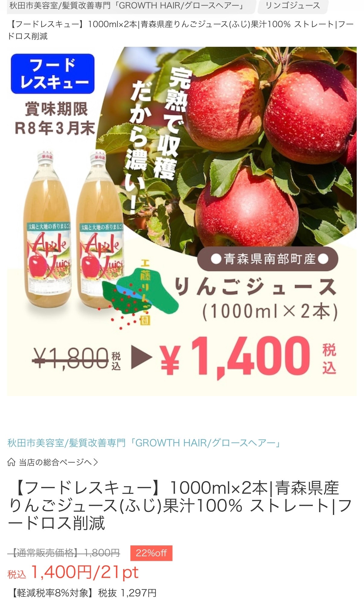 青森県産の濃厚完熟🍎美味しすぎるりんごジュースのフードレスキューです🙏