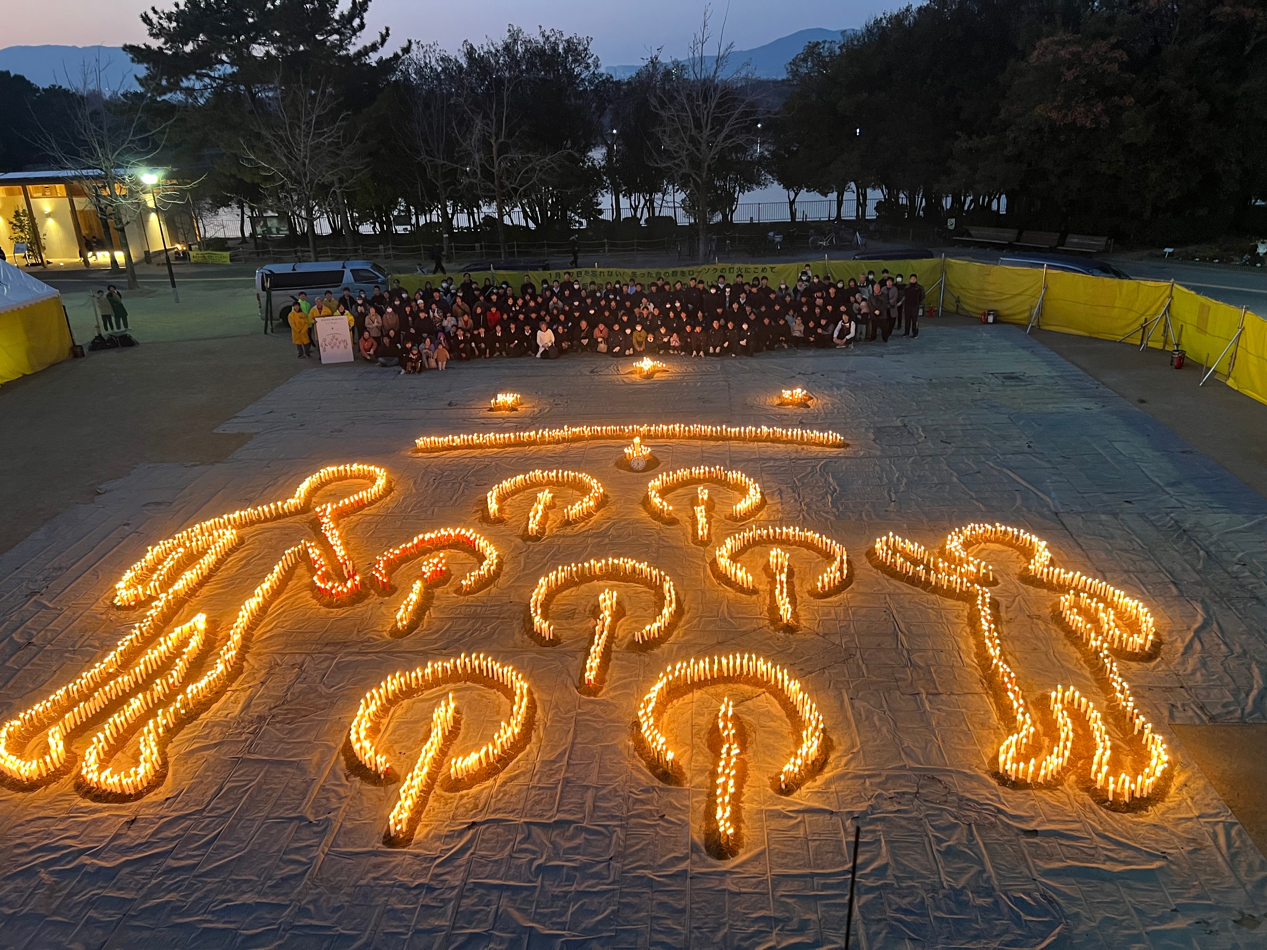 前日の夕方5時46分に黙祷し、12時間ろうそくの灯火を守り続け、明朝5時46分に再び黙祷します。