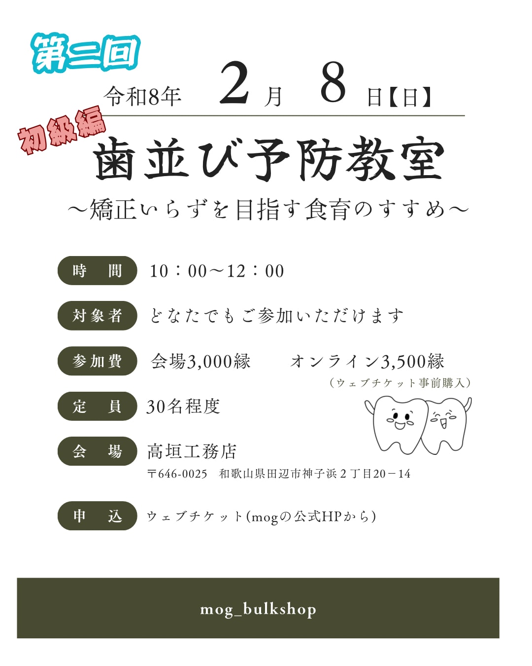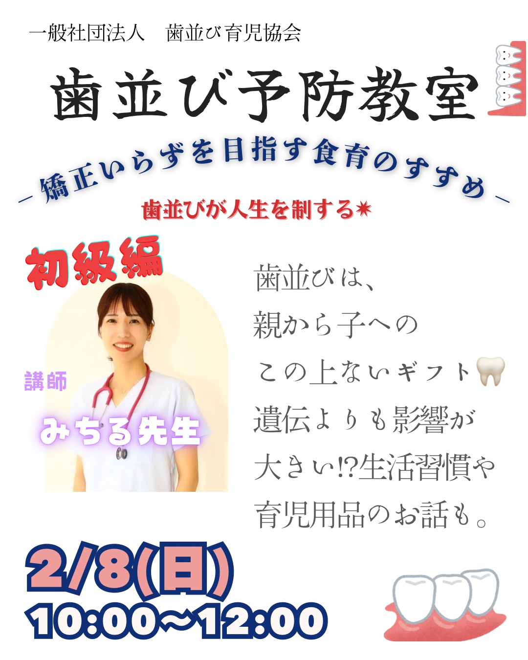 2/8(日)に行われる「歯並び予防教室」についてです。