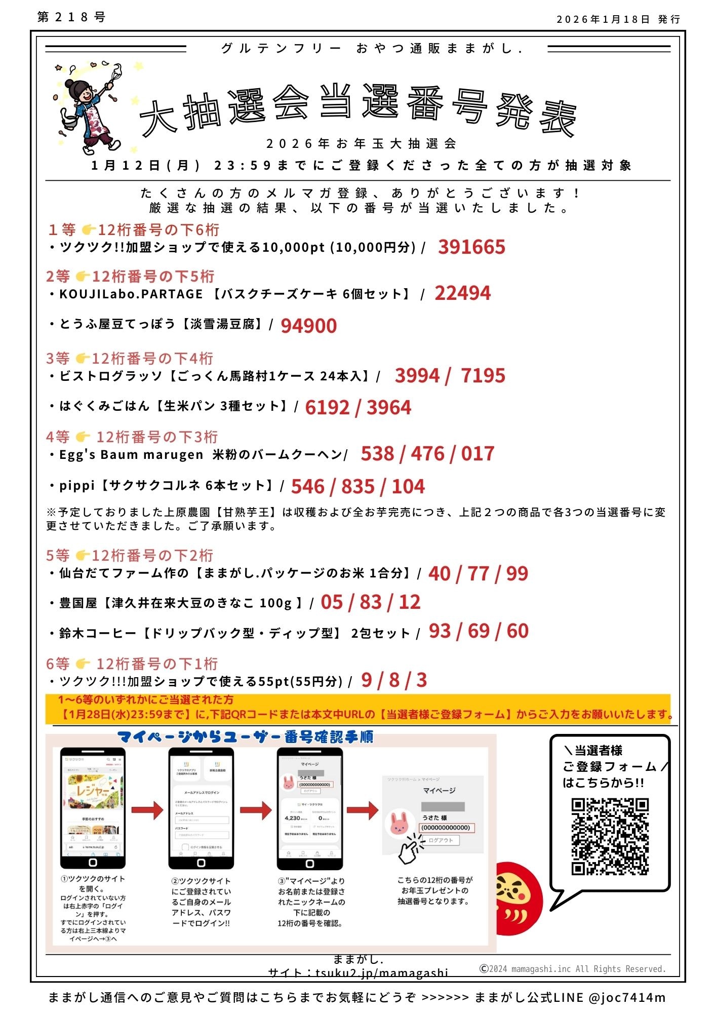 ① 2026年お年玉大抽選会 当選番号発表!!!