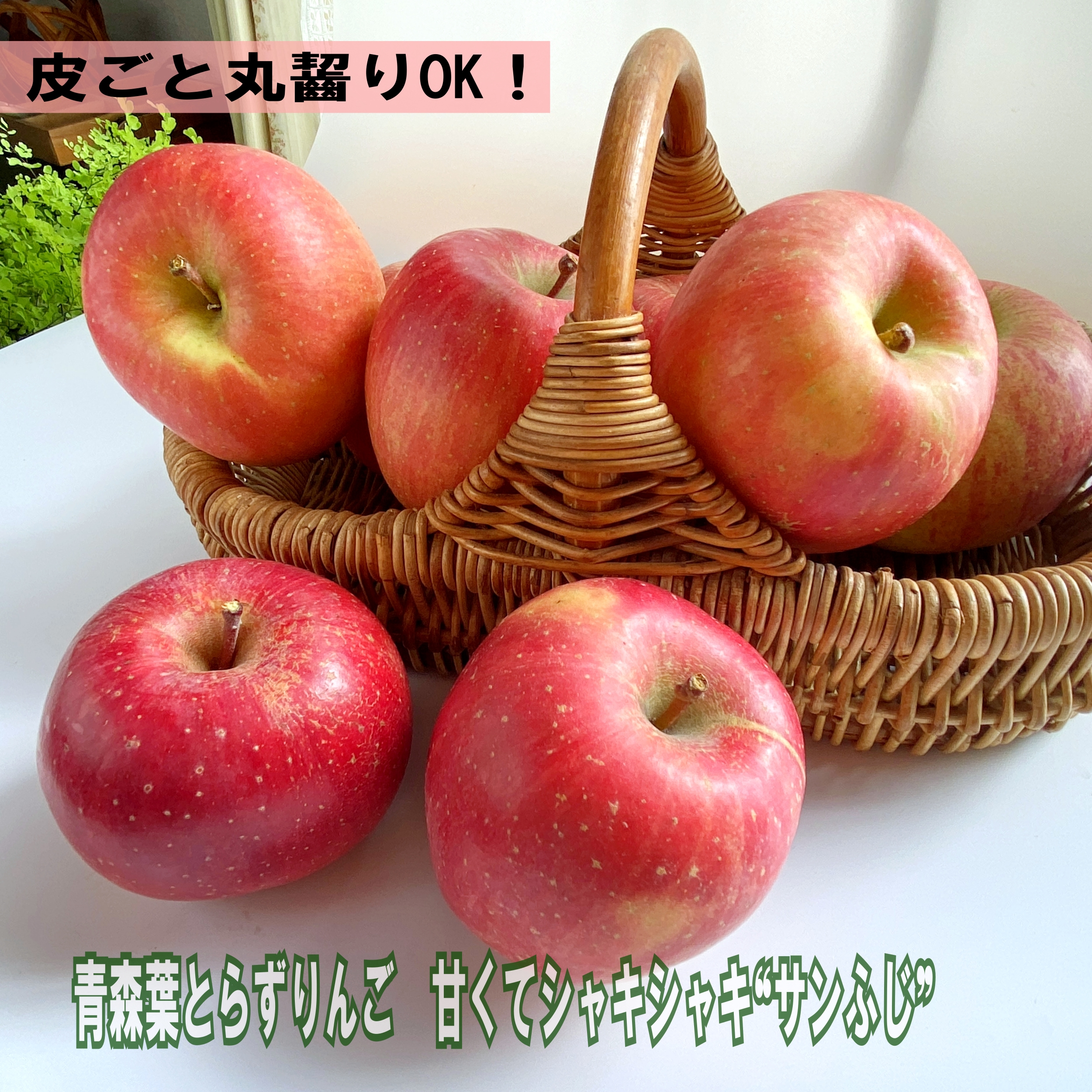 ●青森葉とらずりんごーサンふじ シャキシャキの食感とジューシー!特別栽培だから皮ごと食べられる安心りんご!