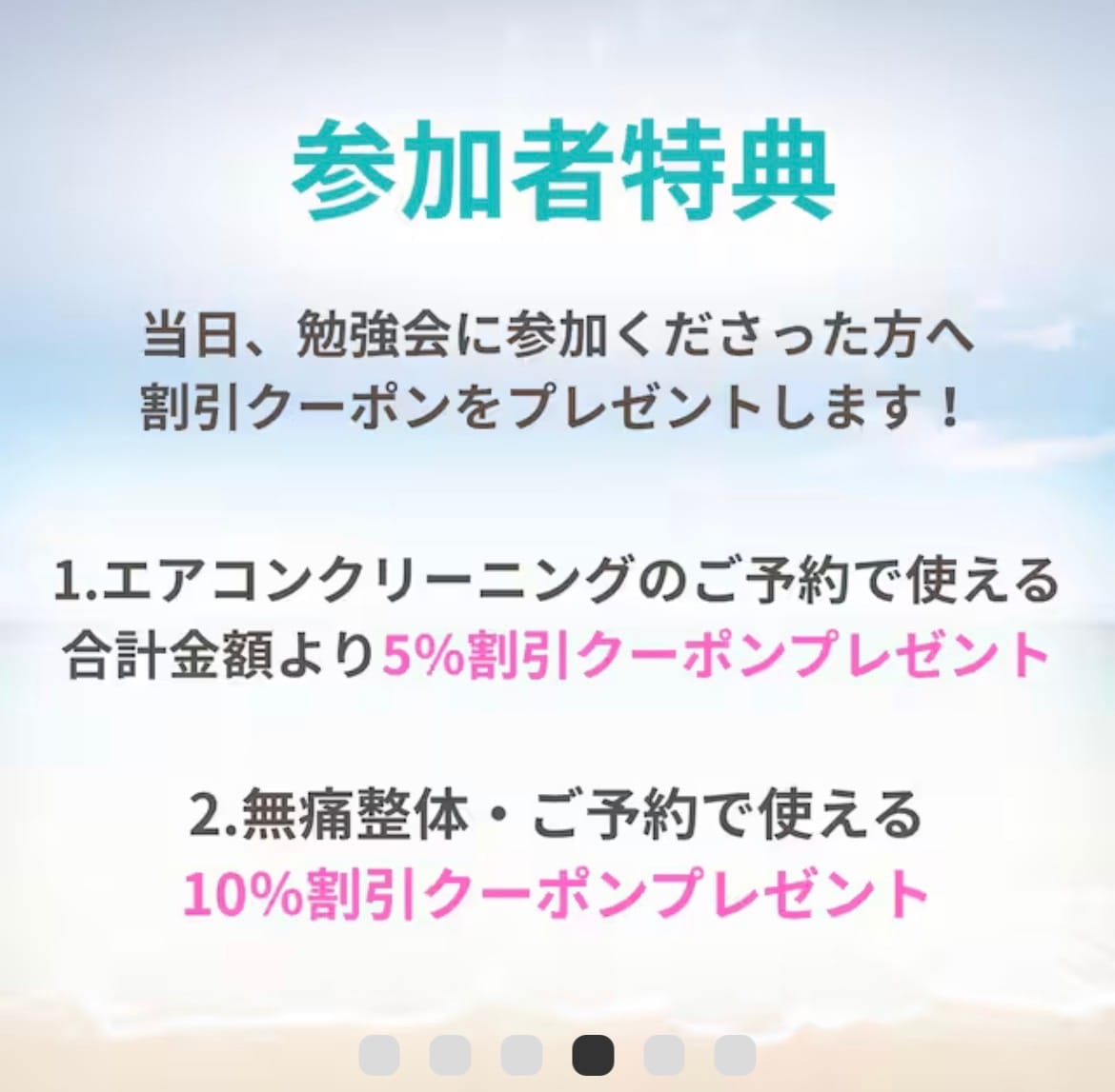 1.エアコンクリーニングのご予約で使える合計金額より5%割引クーポンプレゼント