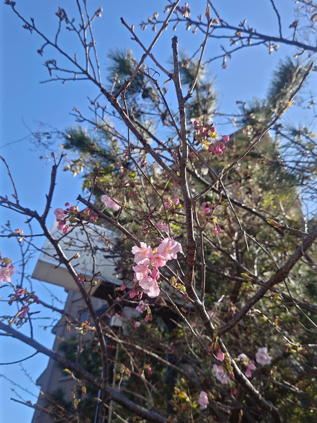 下田全体を見渡しても、日当たりの良い場所では五分咲まで進んでいる樹もあり、見頃は"早め"となりそうです。