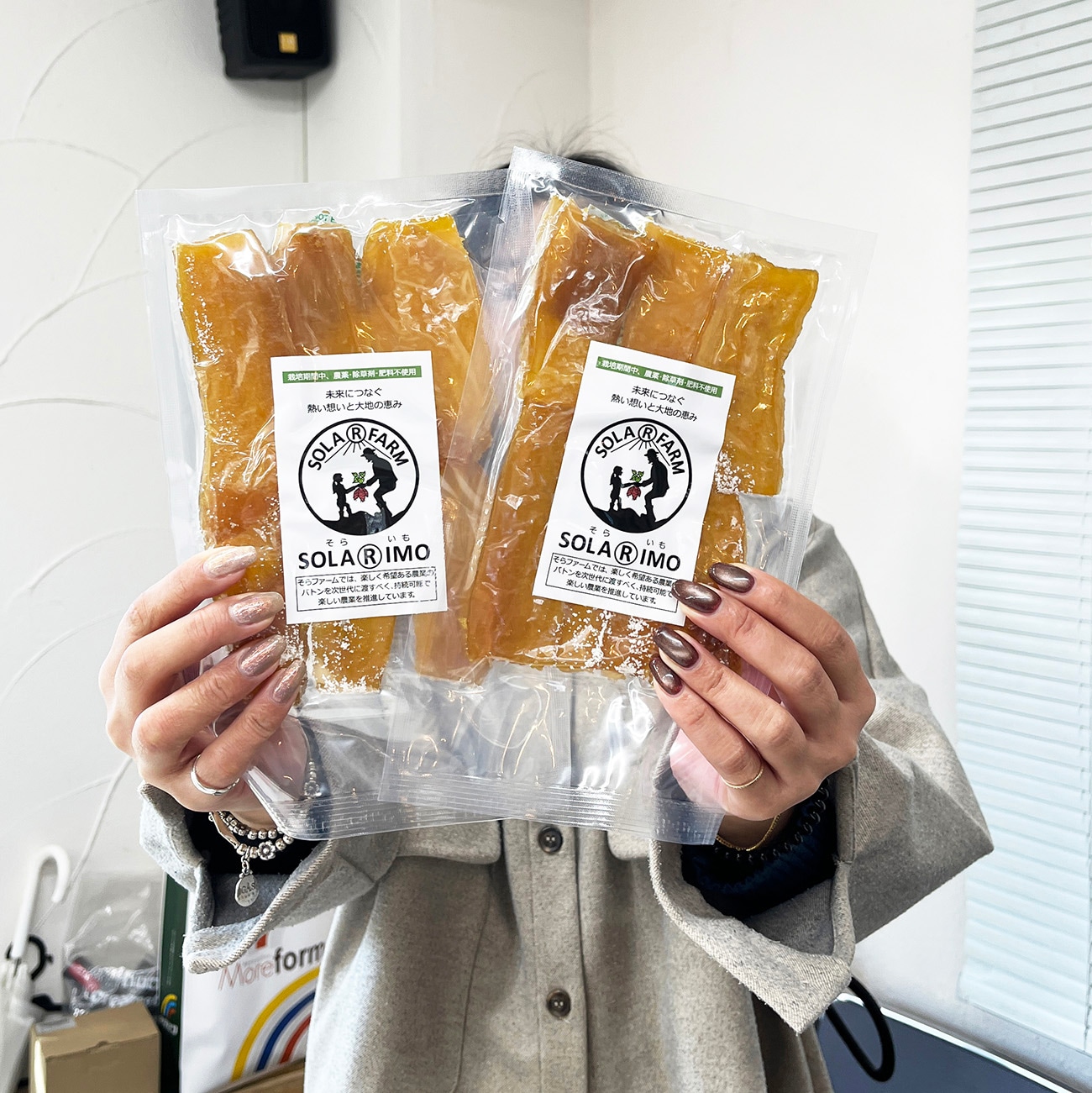 「この干し芋おいしいでしょ~私も何度か買っているけど、生産者『そらファーム』さんは私もよく知っている方でね、さつま芋だけでなく、お米やブルーベリーも無農薬で育てているんですよ」と北川。