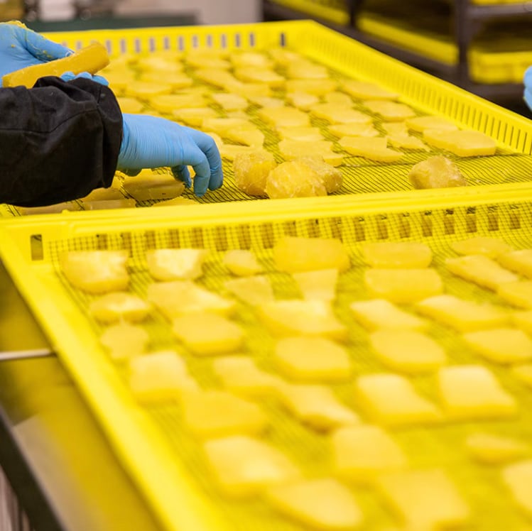 品種は、ねっとり甘い紅はるか。添加物に頼らず、素材で勝負する干し芋は、収穫後にキュアリング処理と長期低温保存を行い、糖度を高めてから加工することで、素材の甘みをしっかり引き出しています。