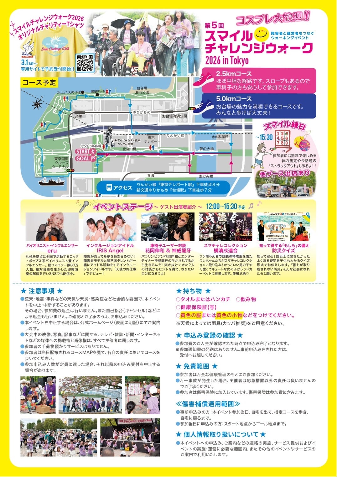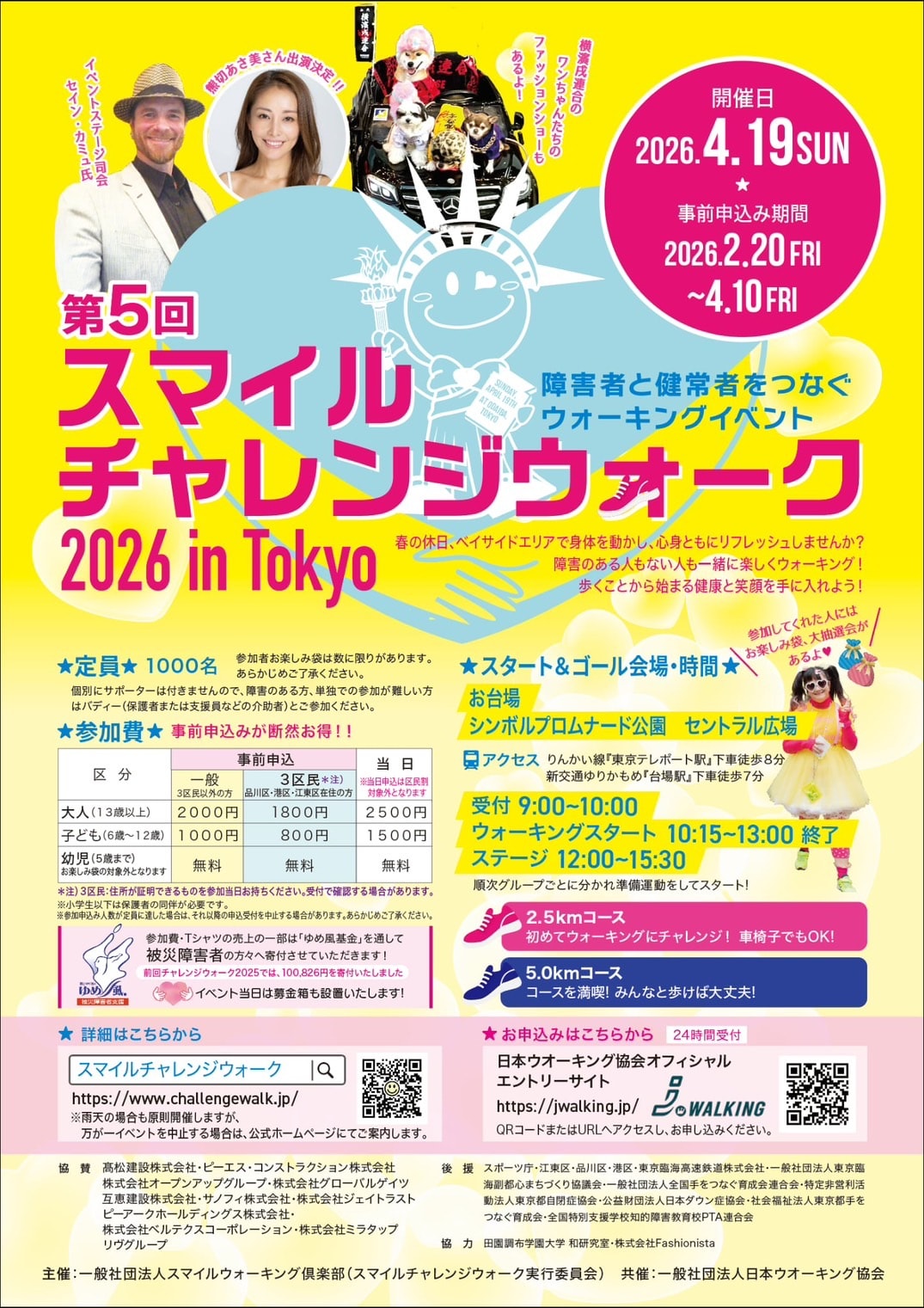 🌈✨第5回スマイルチャレンジウォーク2026 in Tokyo✨🌈🌸今年も4月19日(日)に、お台場でウォーキングイベント開催‼️🌸