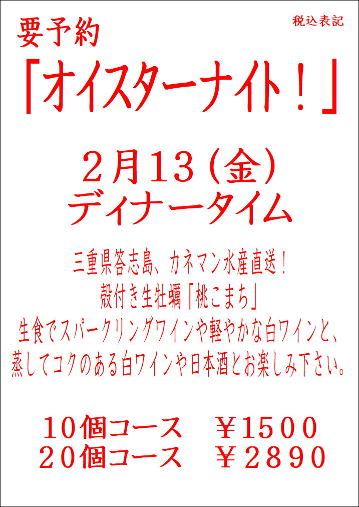 「オイスターナイト!」開催のお知らせです。