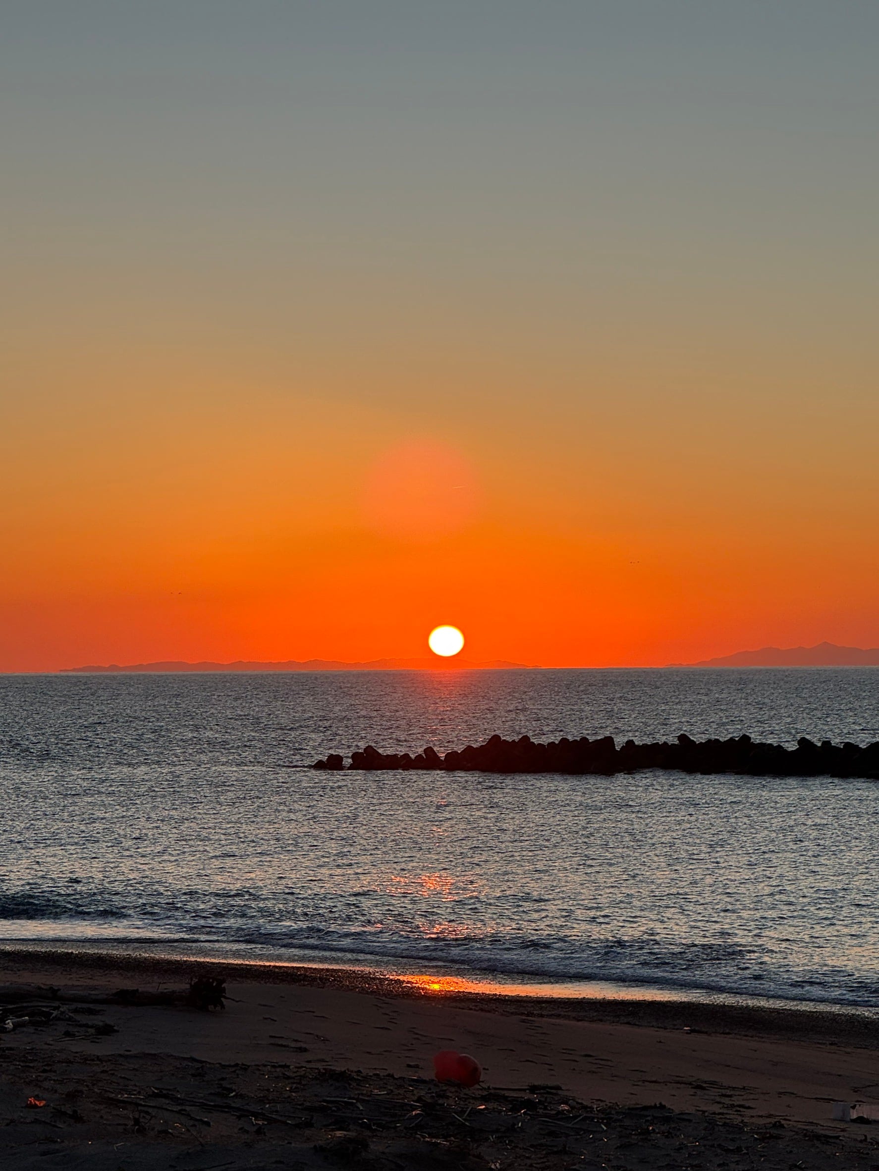 今日、海に沈む夕日があまりにも美しく、