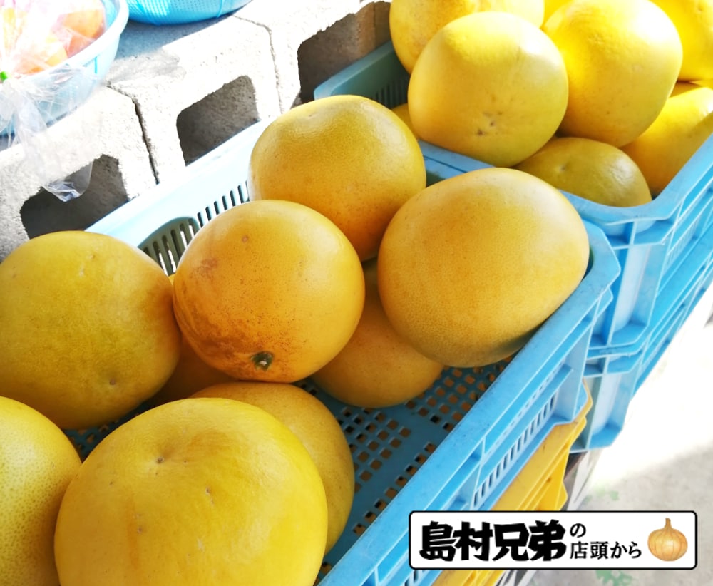 人の顔をゆうに超える大きさが、なんとも柑橘類の常軌を逸しています。