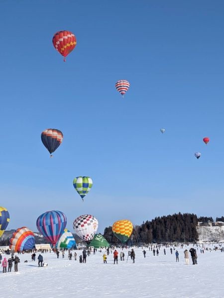 小千谷に春を告げる「小千谷雪原祭り(風船一揆)」も天候に恵まれ、我家の前で開催されました。