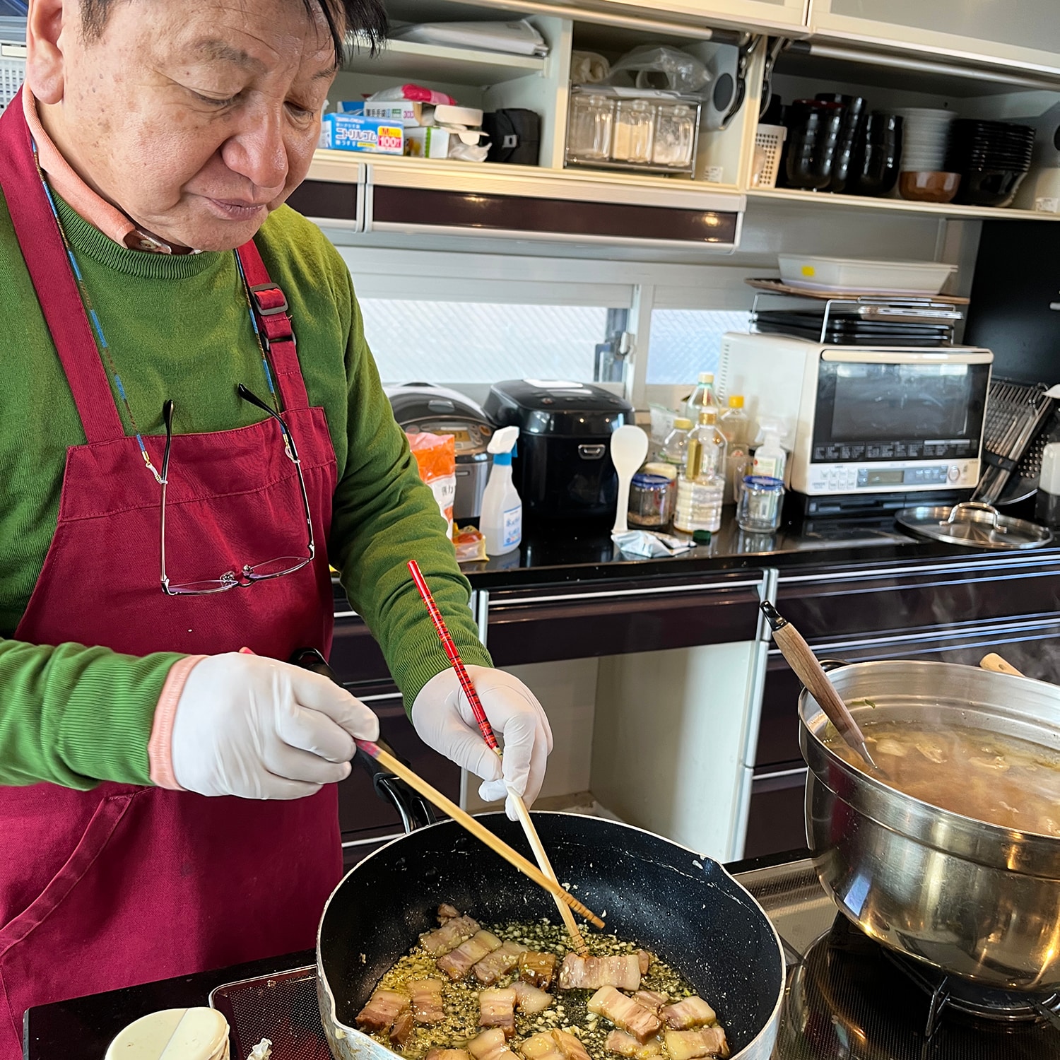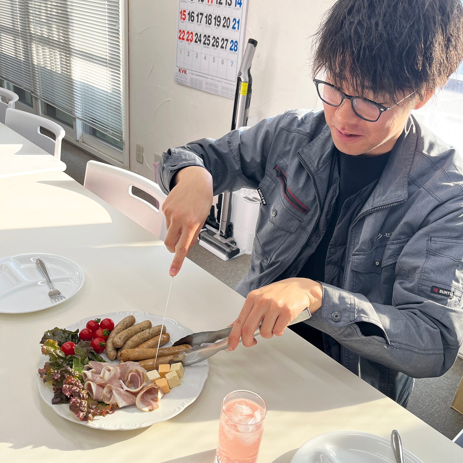 別の日に、スモーキーベーコンブロックで、社長がランチをつくってくれました。