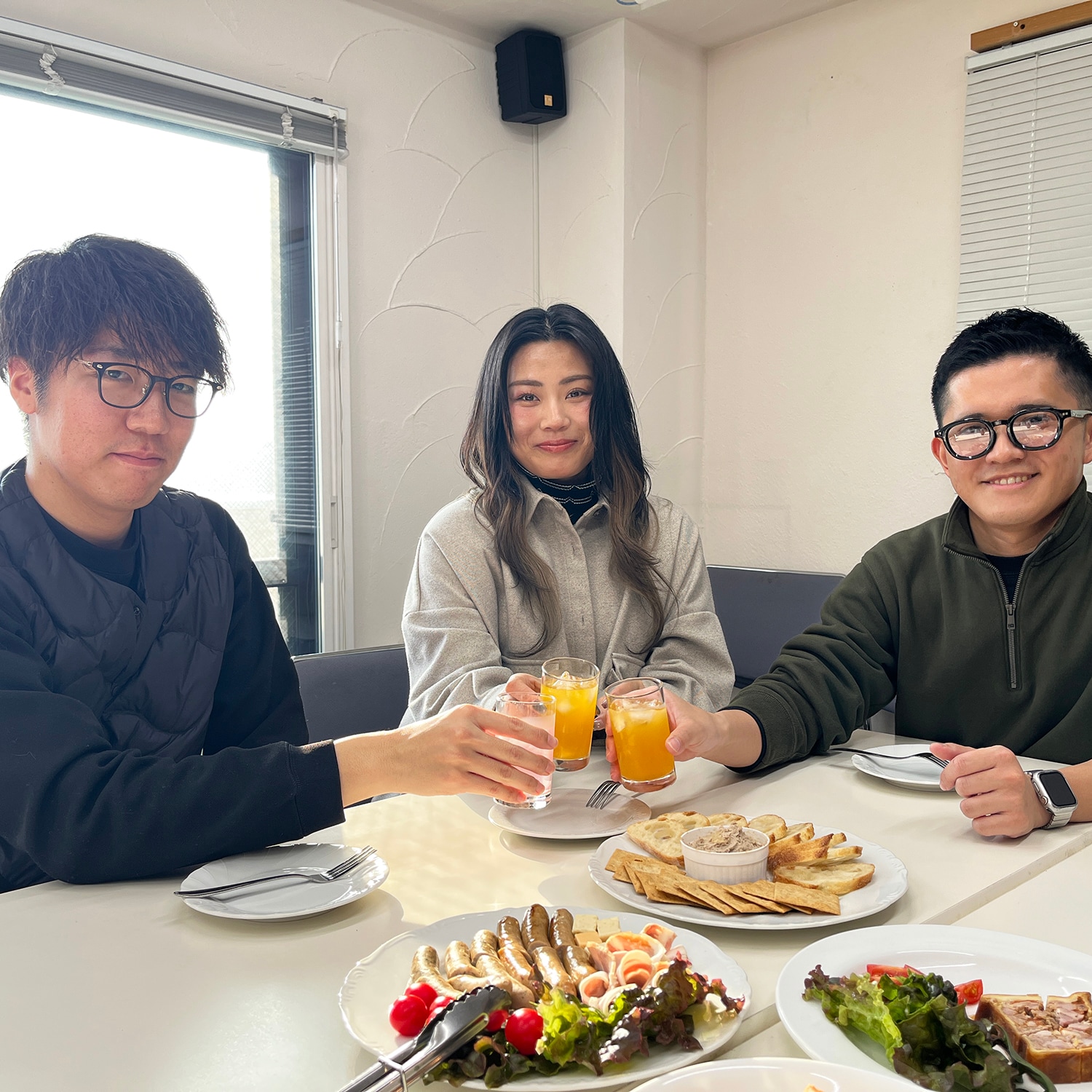 今回集まってくれたのは外装・小森、プランナー・玉島、内装担当・浅野です。