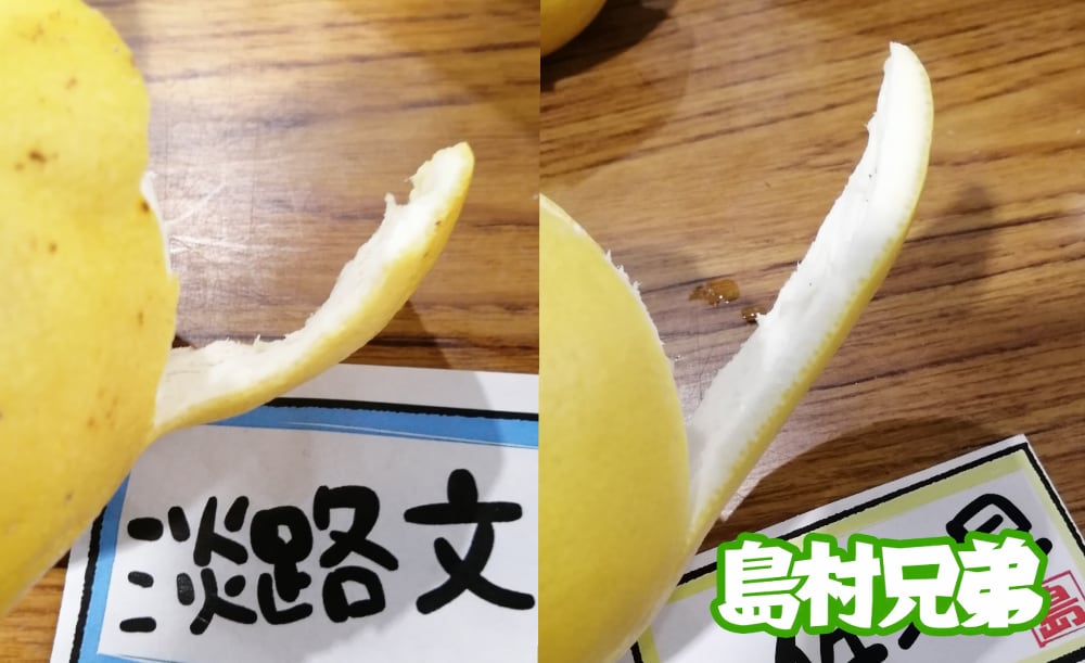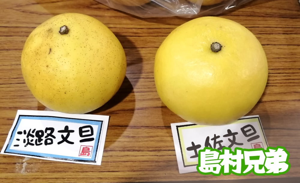 似たような大きさの淡路文旦と土佐文旦で比べてみます。