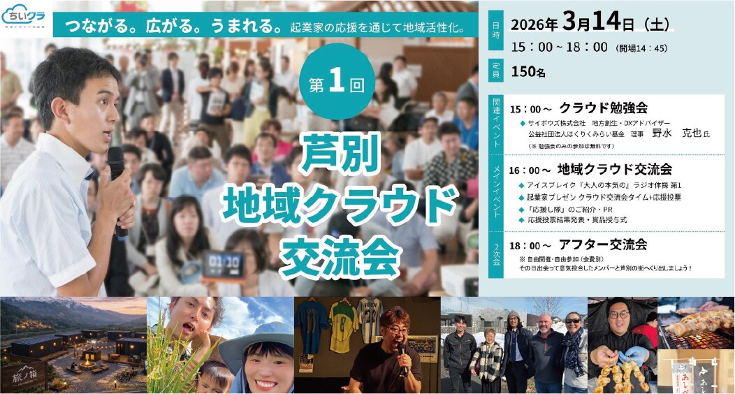地域クラウド交流会(通称ちいクラ)とは、日本各地地域で起業する起業家を応援する交流会型のイベントです。