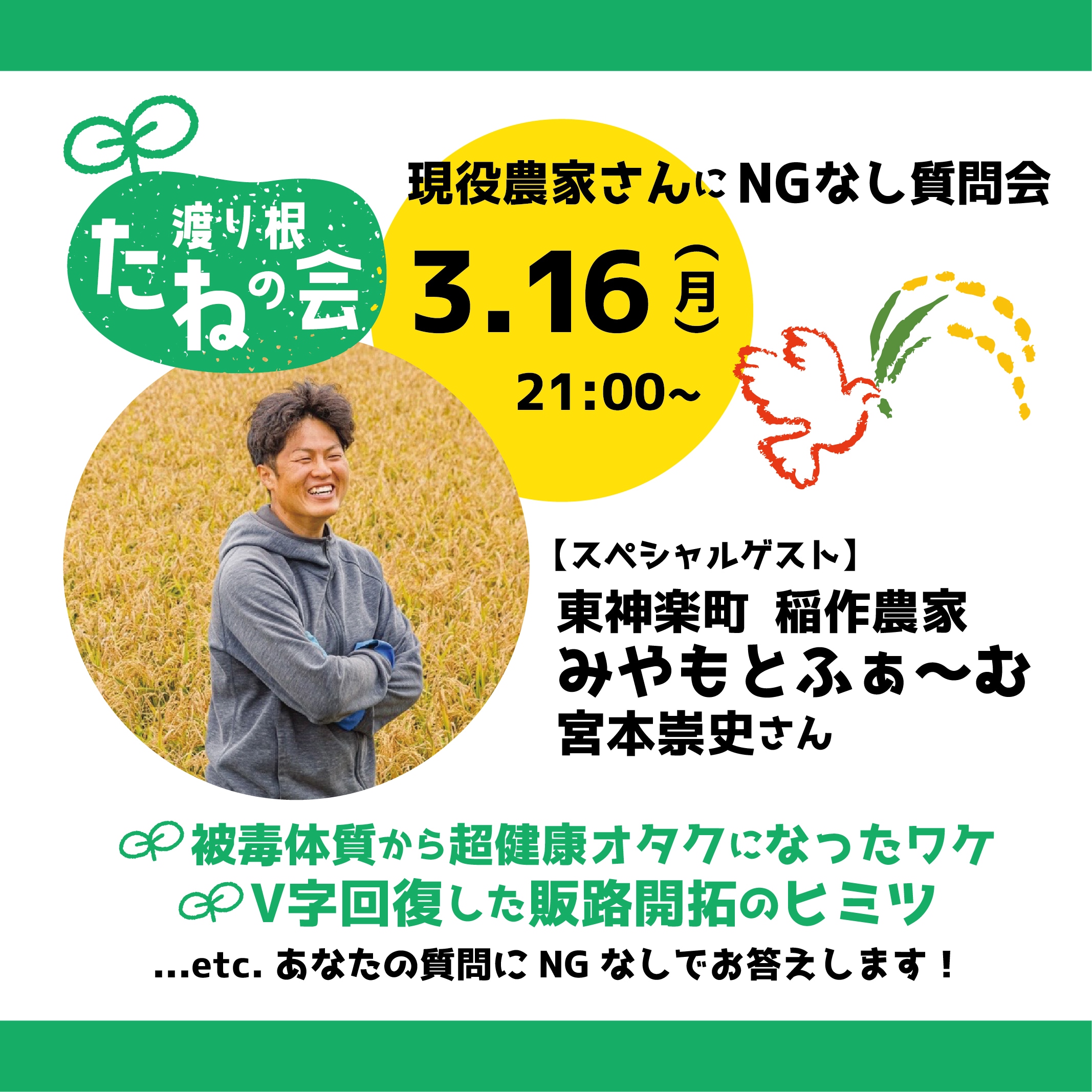 渡り根🌾より3/14,16イベントお知らせ✨✨