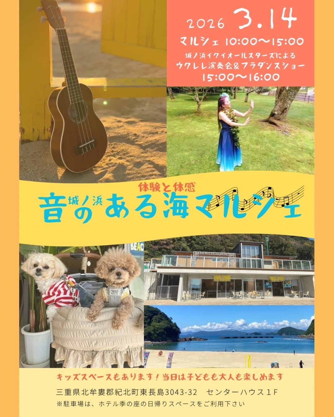 MARCHÉ 10:00 〜 15:00 マルシェ・体験・ワークショップ | STAGE 15:00 〜 16:00 ウクレレ演奏会&フラダンスショー |